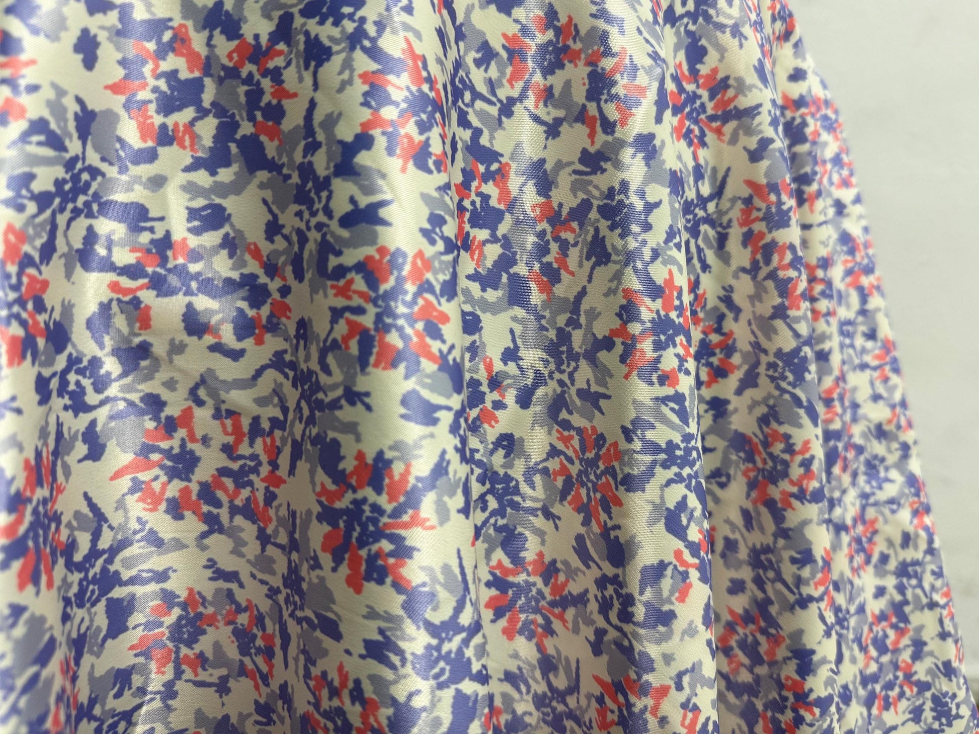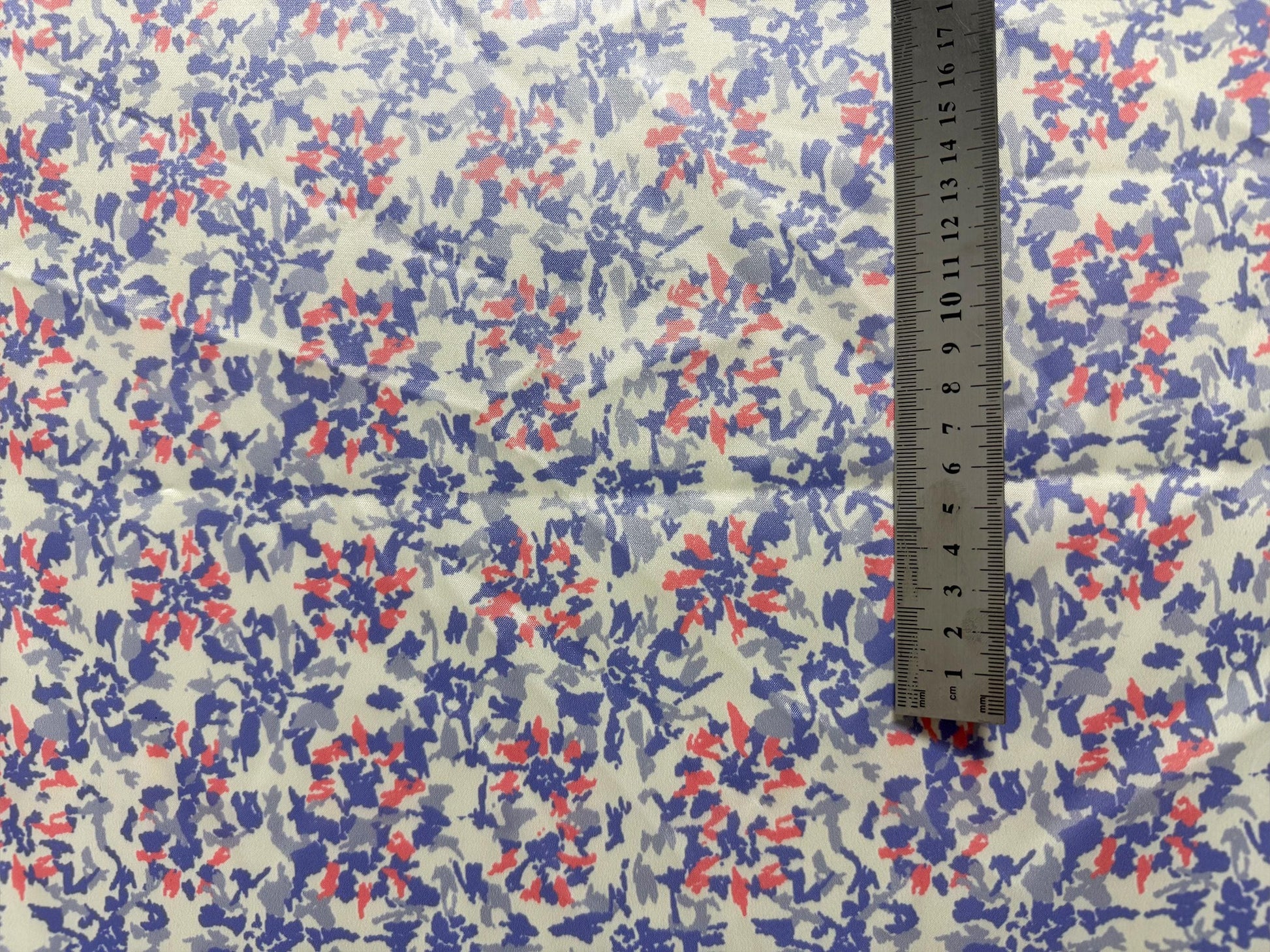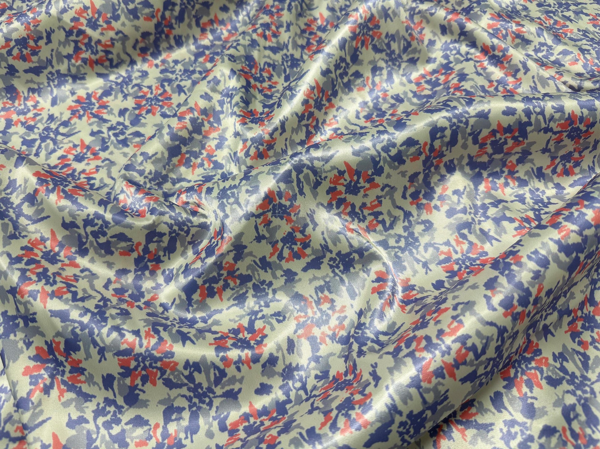Soyut Çiçekli Kamuflaj Kumaş – Metre ile Muslin, Poplin, Keten, Saten, Kot ve Daha Fazlasına Basılmış Mavi Kırmızı Krem Tasarım