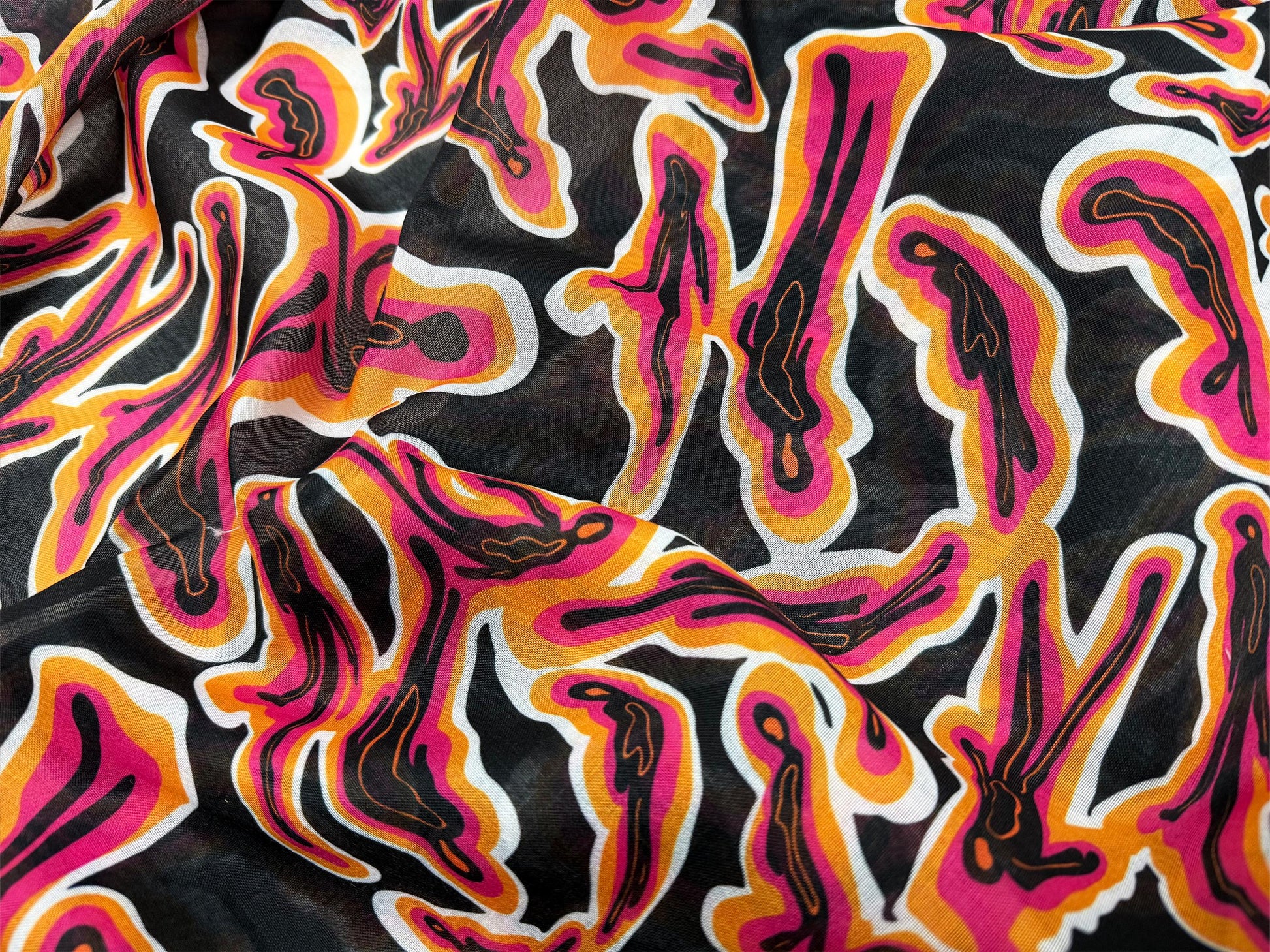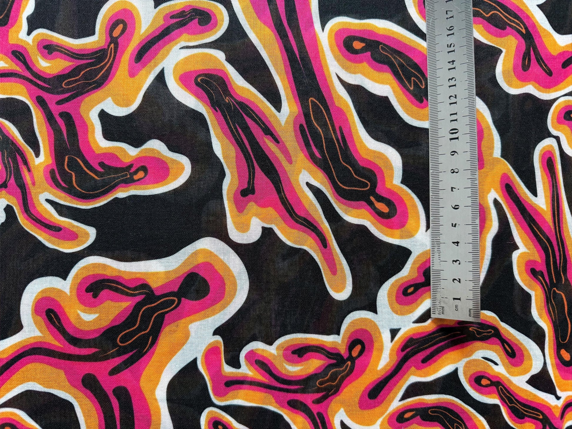 Soyut İnsan Figürü Desenli Kumaş – Dikiş ve Kendin Yap Projeleri için Muslin, Poplin, Keten, Saten ve Kot Kumaşlara Özel Baskı