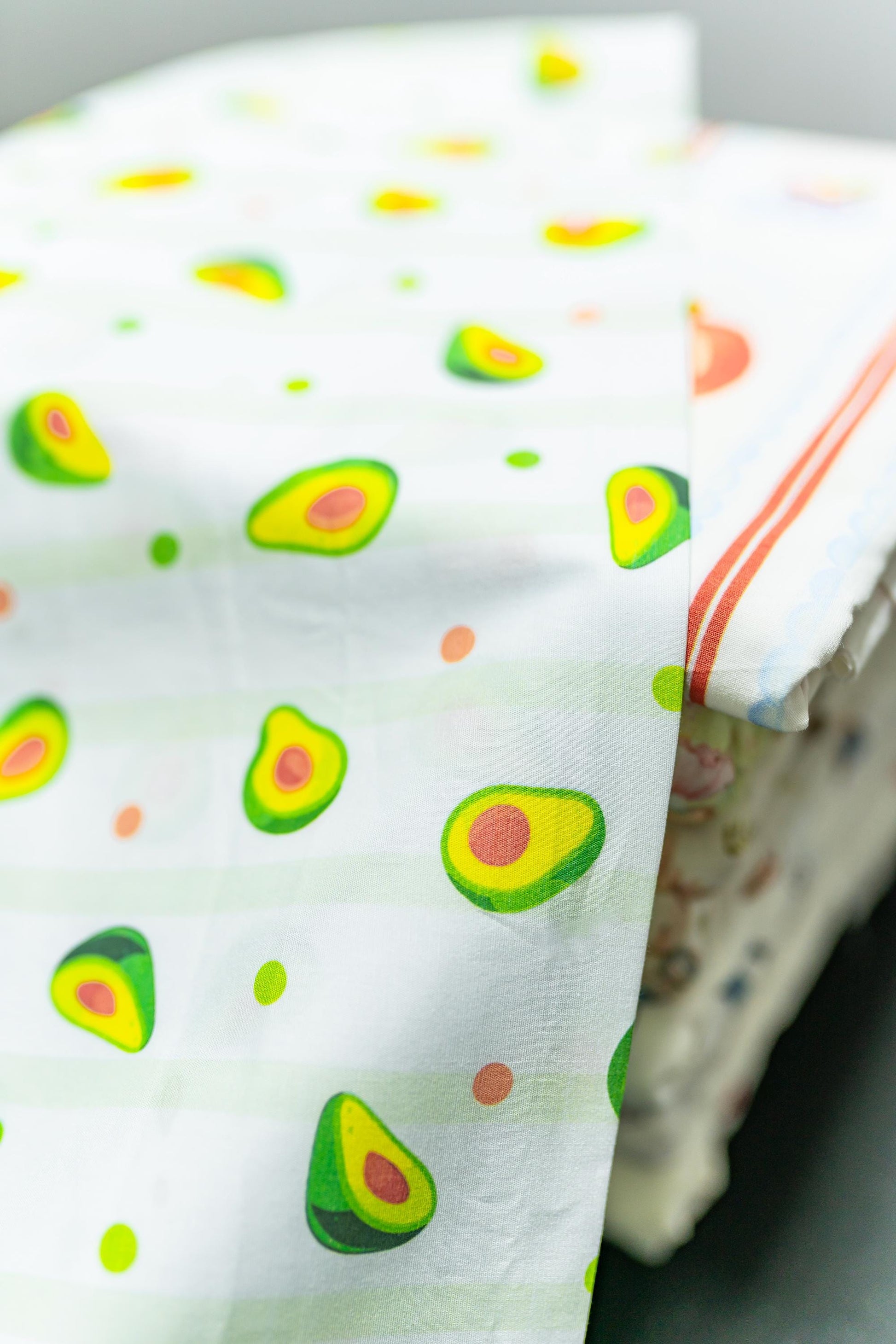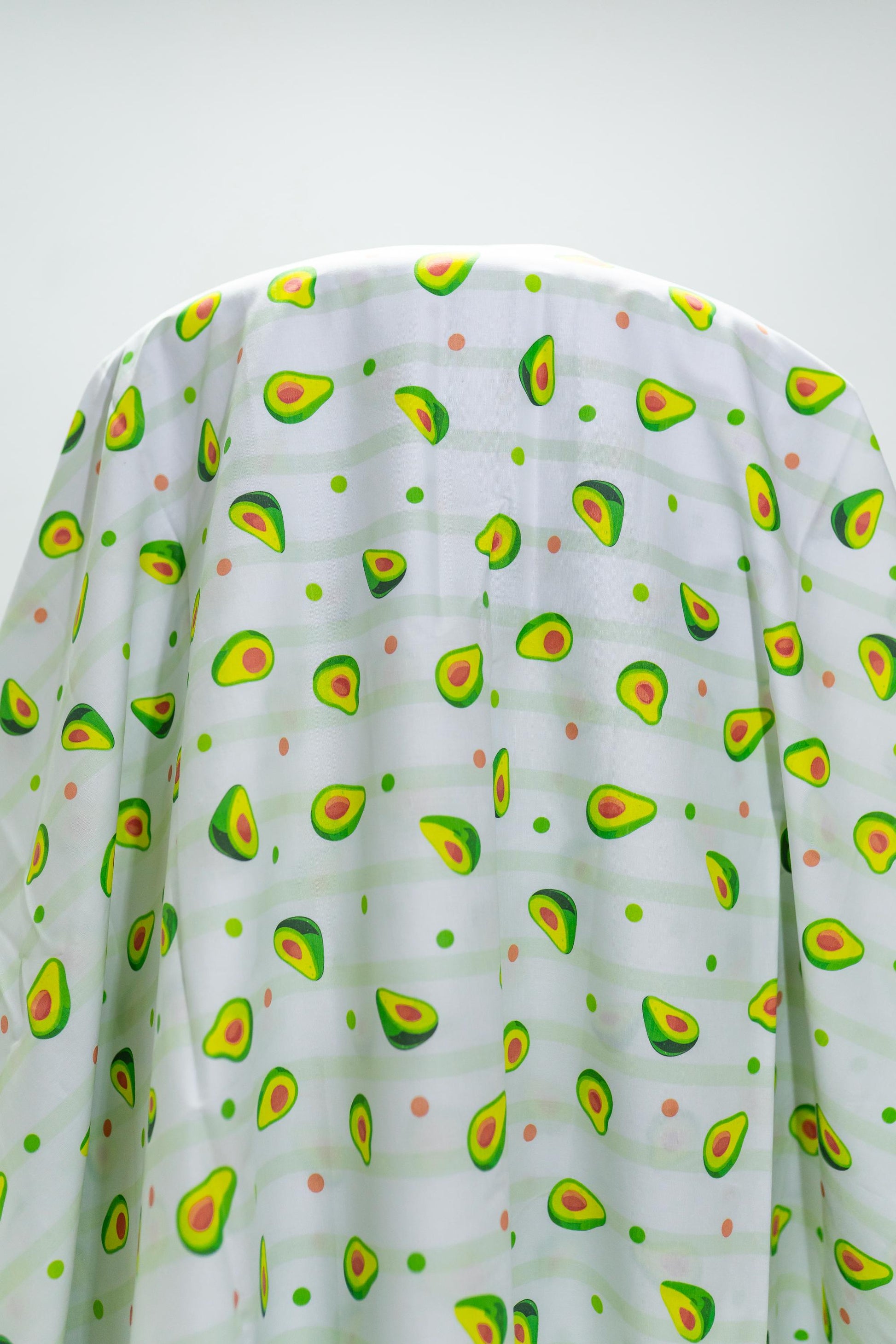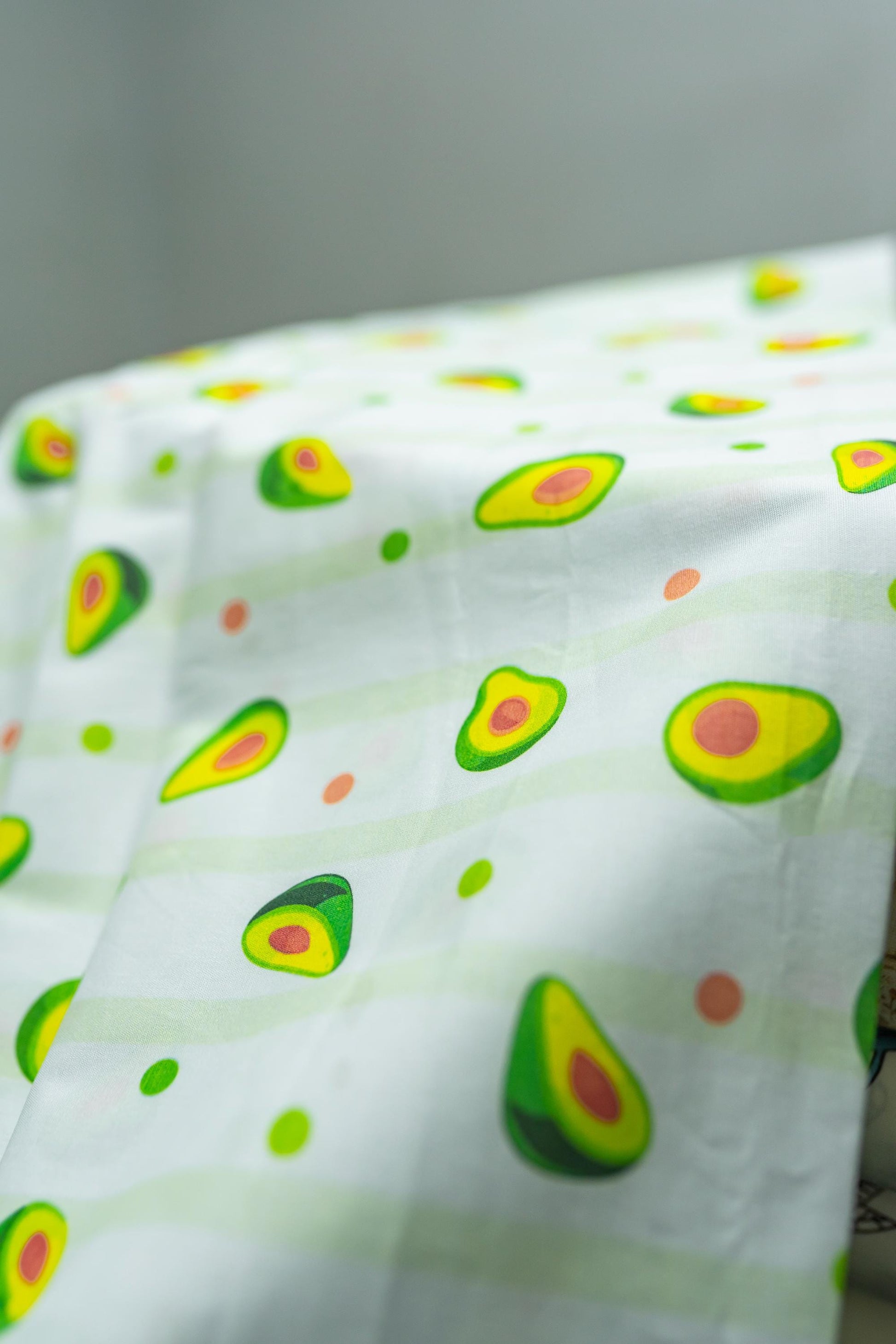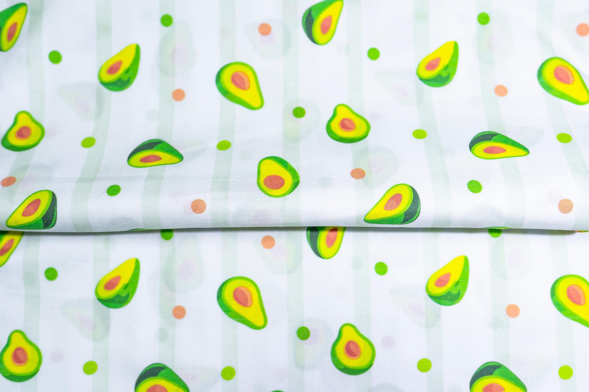 Avokado Baskı Pamuk Saten Kumaş - Beyaz Arka Plan, Pigment Baskı, El Sanatları ve Terzilik için Çok Yönlü, 148 cm genişliğinde