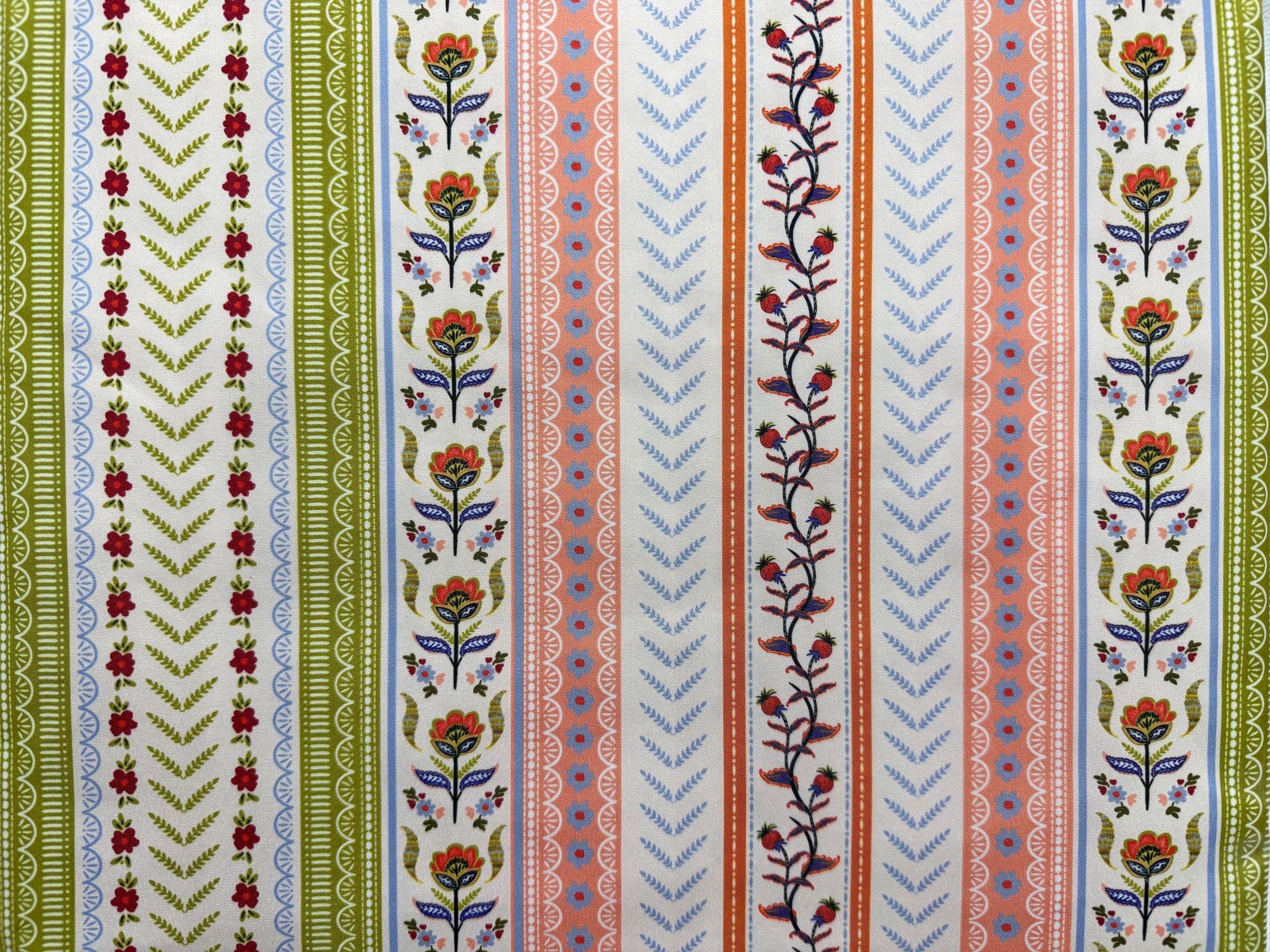 Boho Çiçekli Çizgili Kumaş - Müslin, Poplin, Keten, Saten, Denim, Gabardin ve Su Geçirmez Paraşüt Kumaş Üzerine Etnik Desen Baskılı