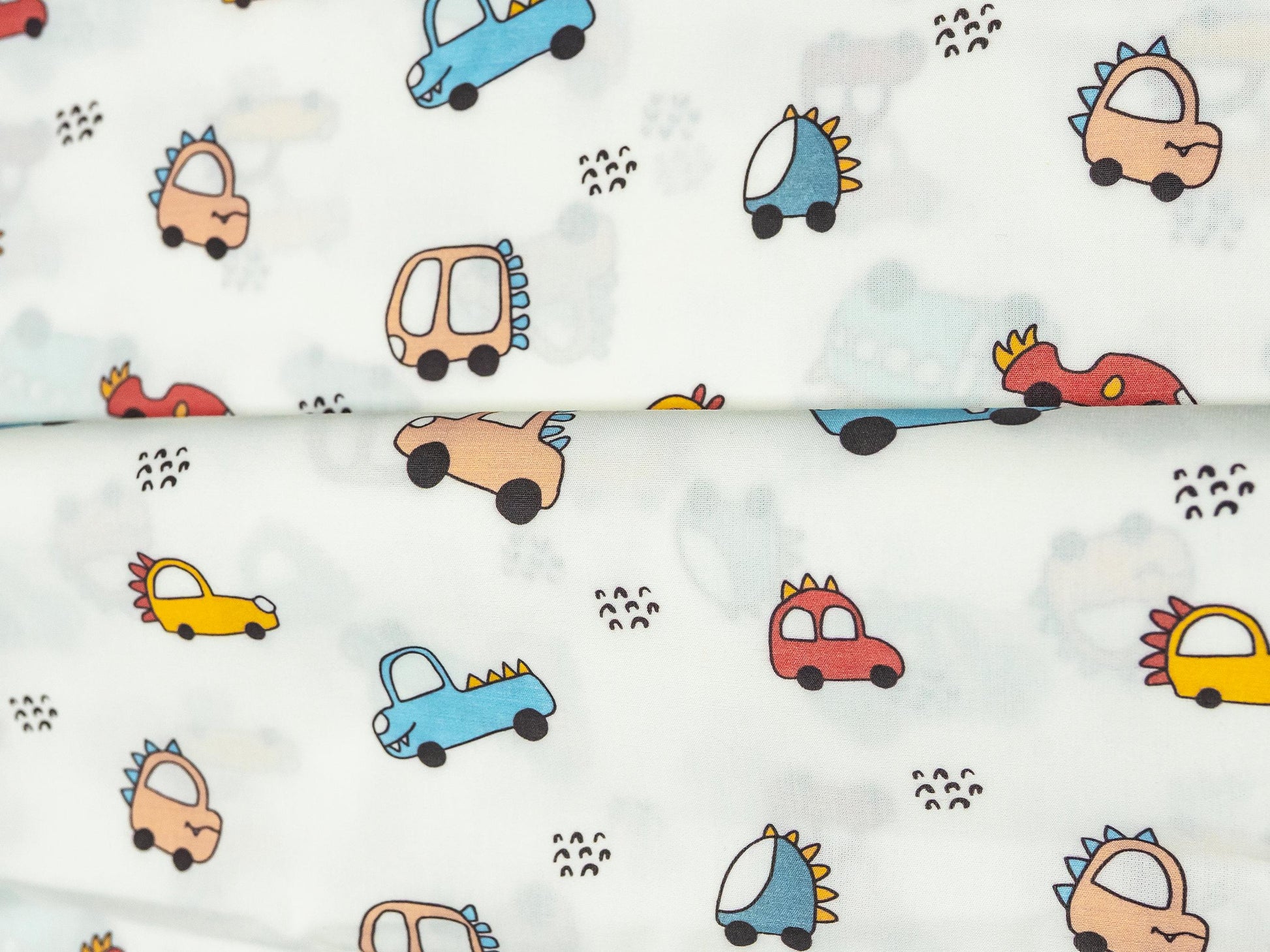Renkli Araba Desenli Poplin Kumaş, Renkli Araba Baskılı Poplin Kumaş, Poplin Kumaş, Kendin Yap dikiş, 148 cm genişliğinde