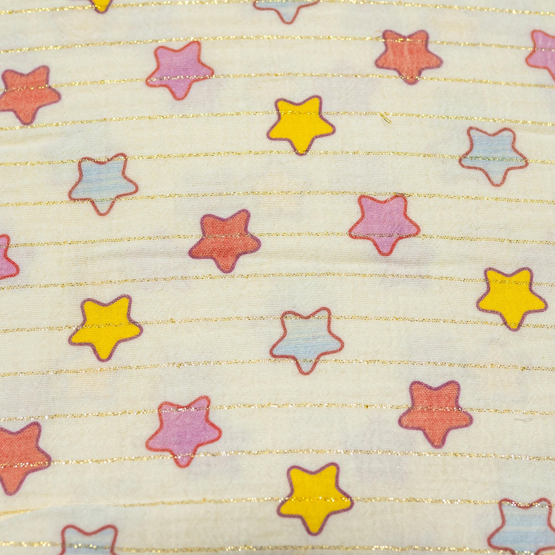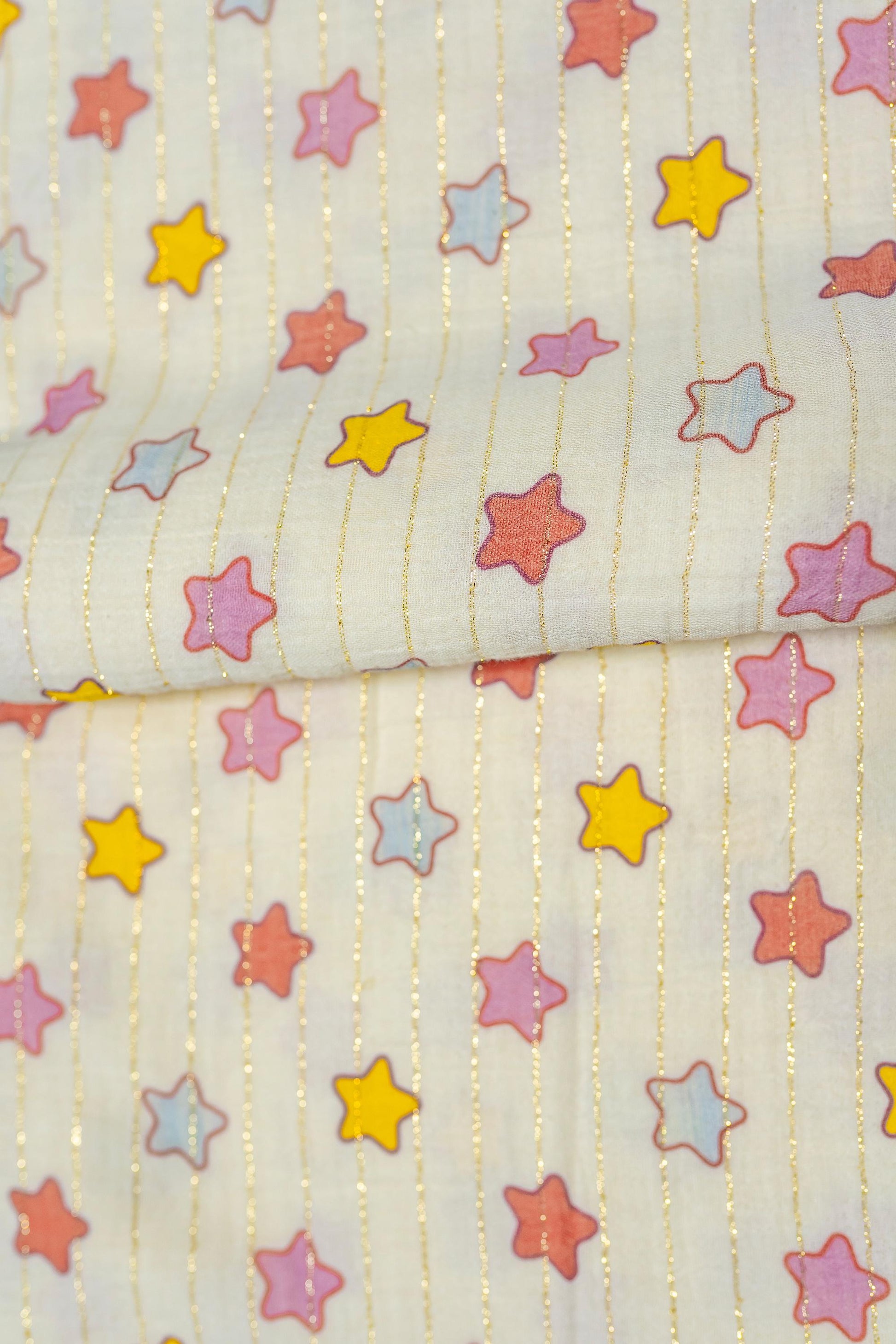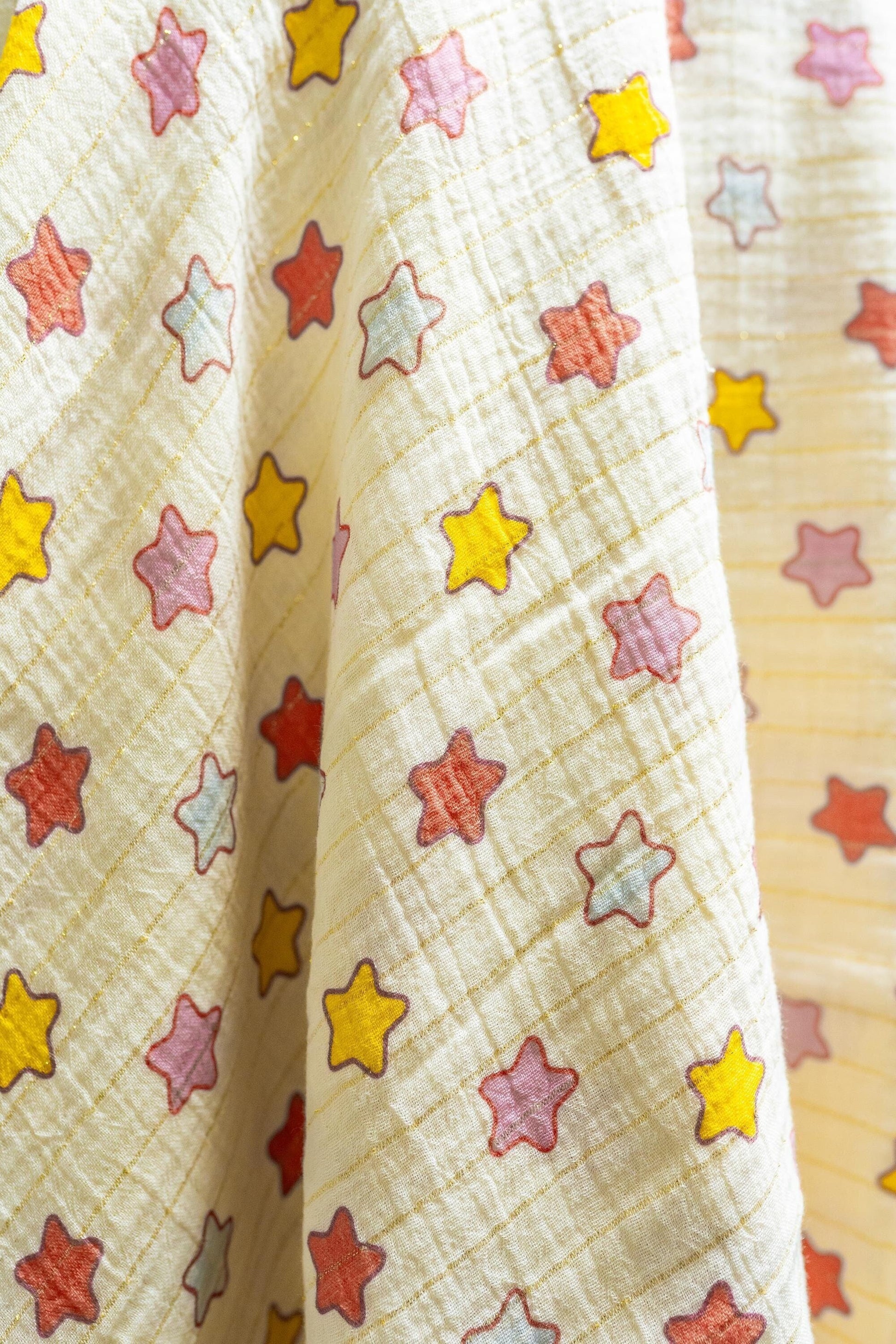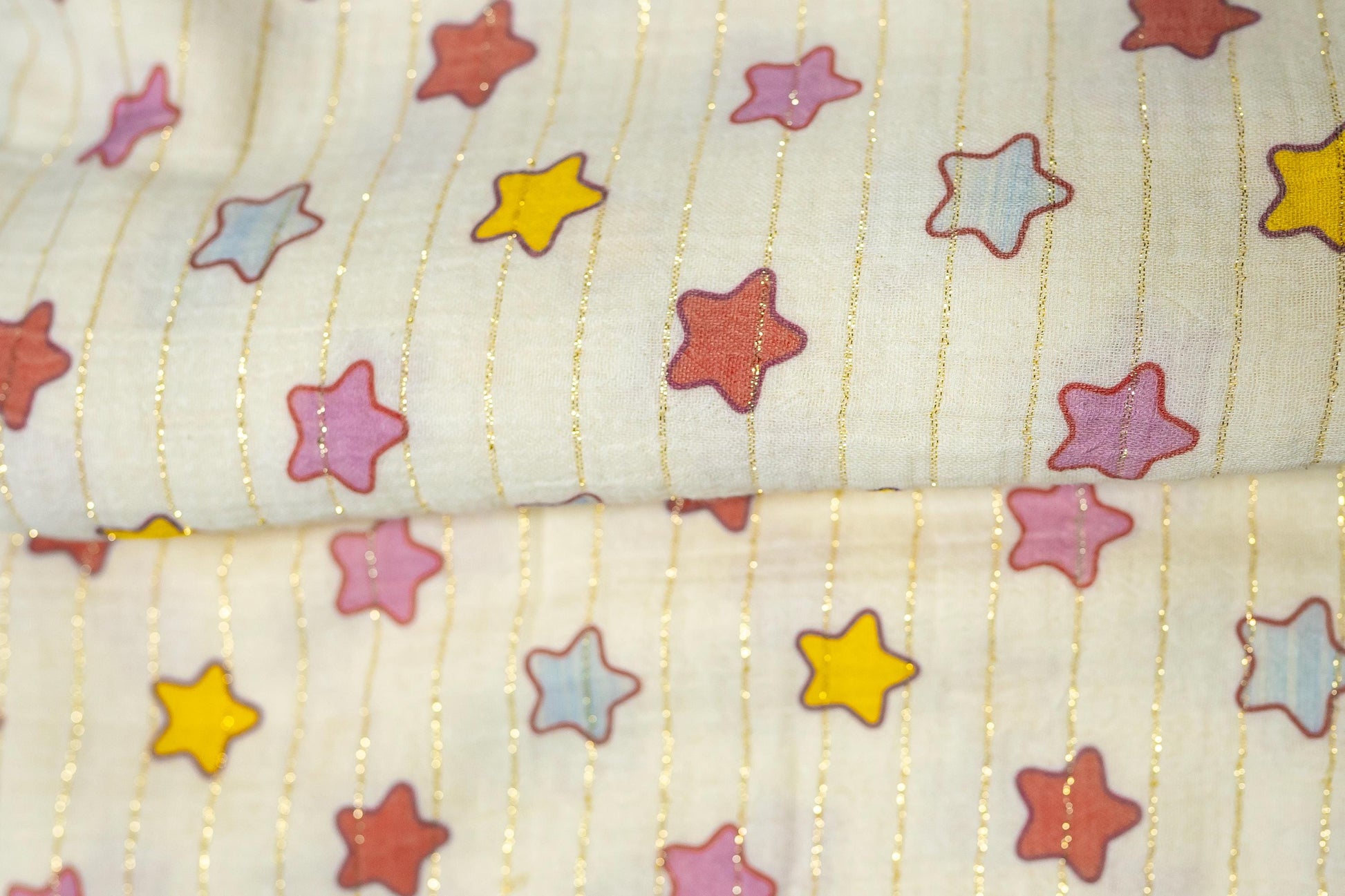 Renkli Yıldız Desenli Müslin Kumaş - Çift Katmanlı, Pigment Baskılı, Yumuşak ve Çok Yönlü, 148 cm genişliğinde