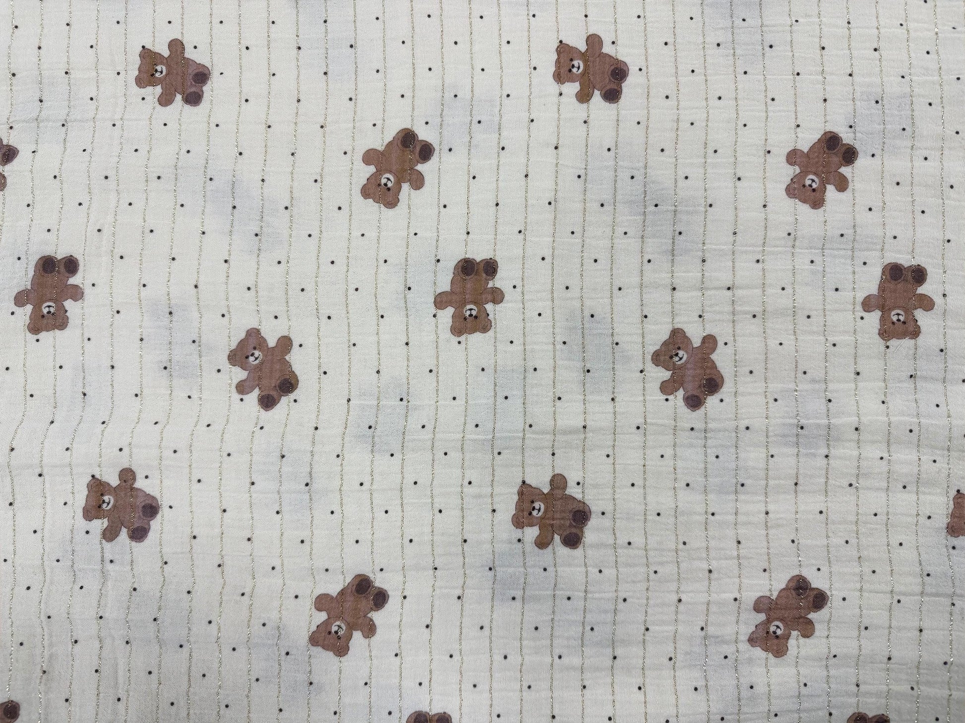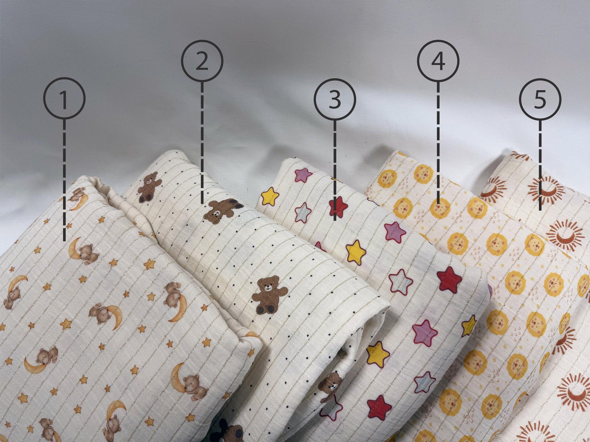 Bebek projeleri, el sanatları ve ev dekorasyonu için mükemmel olan çift katlı muslin kumaş koleksiyonumuzu keşfedin. Her kumaş, bir zarafet dokunuşu için pigment baskılı desenler ve parıldayan altın simli çizgilerle benzersiz tasarımlara sahiptir. 5 keyifli desen arasından seçim yapın: 1- Hilal Aylı Ayılar 2- Kahverengi Ayı ve Siyah Puantiyeli 3- Renkli Yıldızlar 4- Sarı Ayılar ve Yıldızlar 5- Güneş Işığı Benzeri Dairelerle Altın Hilal ♦♦♦ ÖZELLİKLER ♦♦♦ Malzeme: Çift katlı muslin Baskı Türü: Pigment Ağırlık: 120 g/m² Genişlik: 148 cm Kalın Çeyrek: 29"x18" 🧵 Küçük dikiş veya kapitone projeleriniz için kalın çeyrek seçeneği de mevcuttur! ♦♦♦ BAKIM VE KULLANIM ♦♦♦ - Makinede Yıkanabilir: 30–40 ºC'de (86–104 ºF) hassas programda yıkayın. - Profesyonel Temizlik: Perkloretilen ve diğer çözücülerle kuru temizleme için uygundur. - Ütüleme: Maksimum 150 ºC'de (300 ºF) ütüleyin. - Ağartıcı Kullanmayın: Ağartıcı veya benzeri sert kimyasallar kullanmaktan kaçının. - Kurutma Makinesinde Kurutmayın: En iyi sonuçlar için düz bir şekilde serin veya asarak kurutun. ▪ Renkler, bireysel monitör ayarlarına bağlı olarak biraz farklılık gösterebilir. Kumaş seçiminizden tamamen memnun kalmanızı sağlamak için satın alma işleminizi tamamlamadan önce numune sipariş etmenizi şiddetle tavsiye ederiz. Bebek projeleri, el sanatları ve terzilik için mükemmel olan yumuşak çift gazlı muslin kumaşımızı keşfedin. Bu benzersiz baskılı tekstiller, ayılar, hilaller, yıldızlar ve puantiyeler gibi sevimli tasarımlara ve ekstra bir çekicilik dokunuşu için altın rengi simli çizgilere sahiptir. Bebek battaniyeleri, kıyafetleri ve aksesuarları yaratmak için ideal olan bu nefes alabilen ve hafif bebek kumaşı, tasarımcılar ve kendin yap meraklıları için olmazsa olmazdır. İster küçük çocuğunuz için özel bir şey dikiyor olun, ister bir el işi projesi üzerinde çalışıyor olun, bu muslin kumaş fikirlerinizi hayata geçirecektir. Bu muslin kumaşla koleksiyonunuzu geliştirin ve gerçekten benzersiz bir şey yaratmaya başlayın! 💫