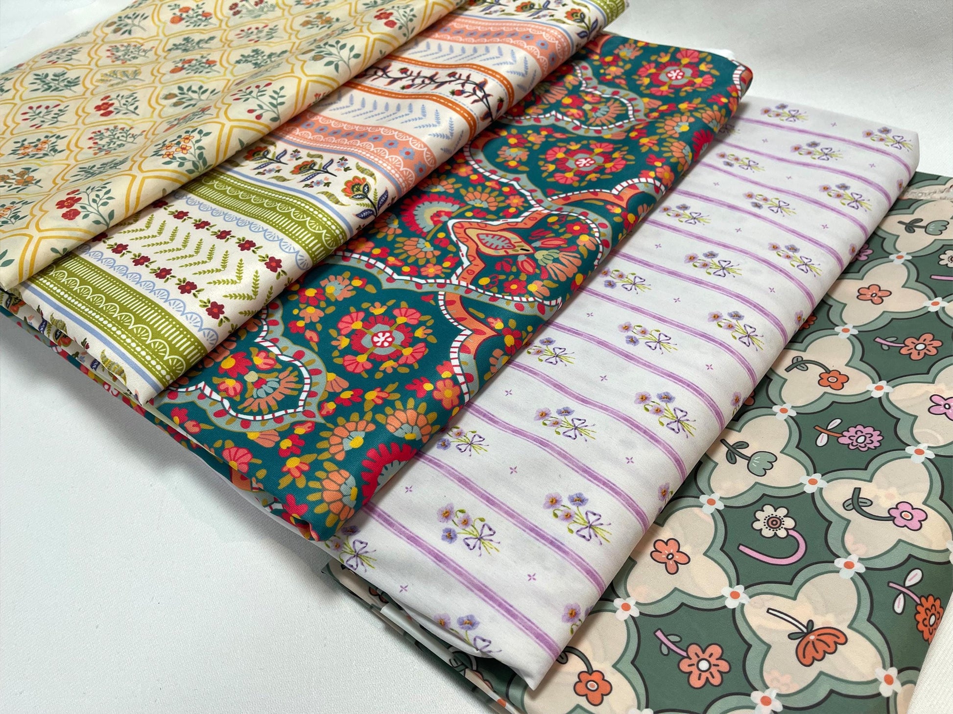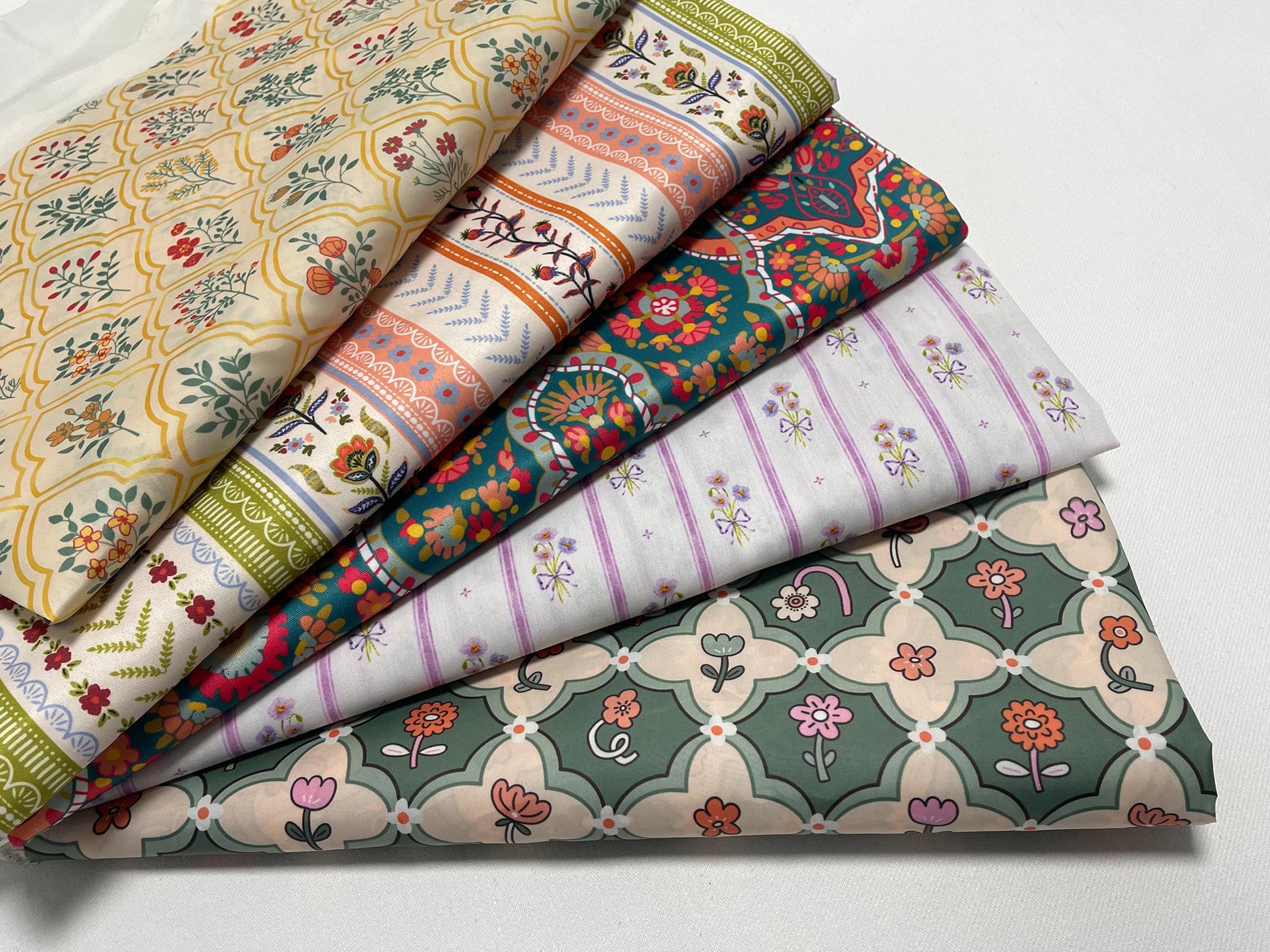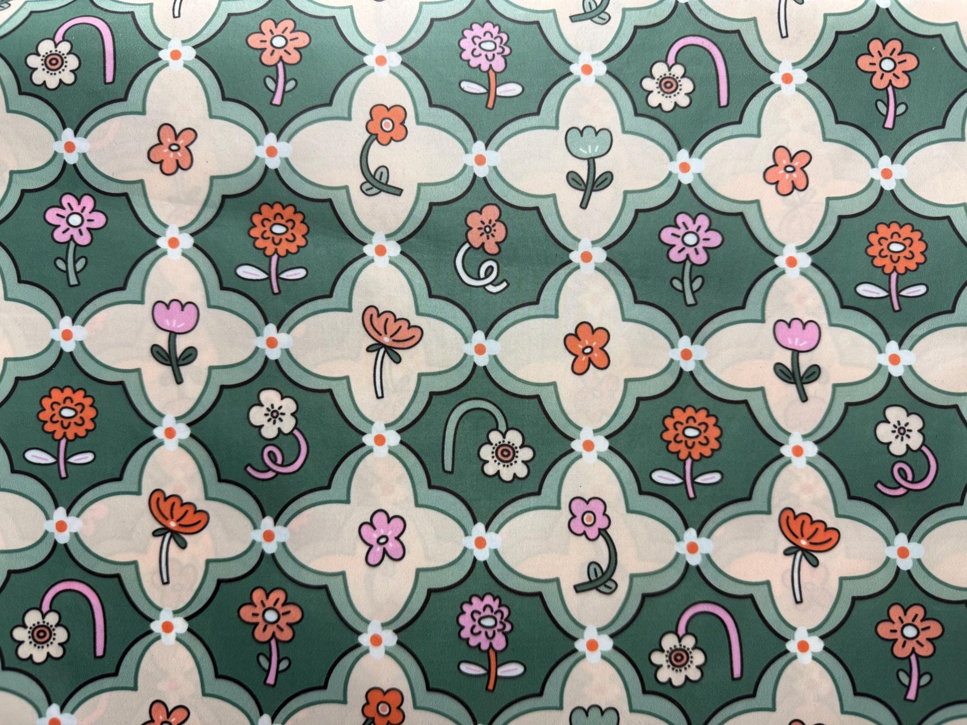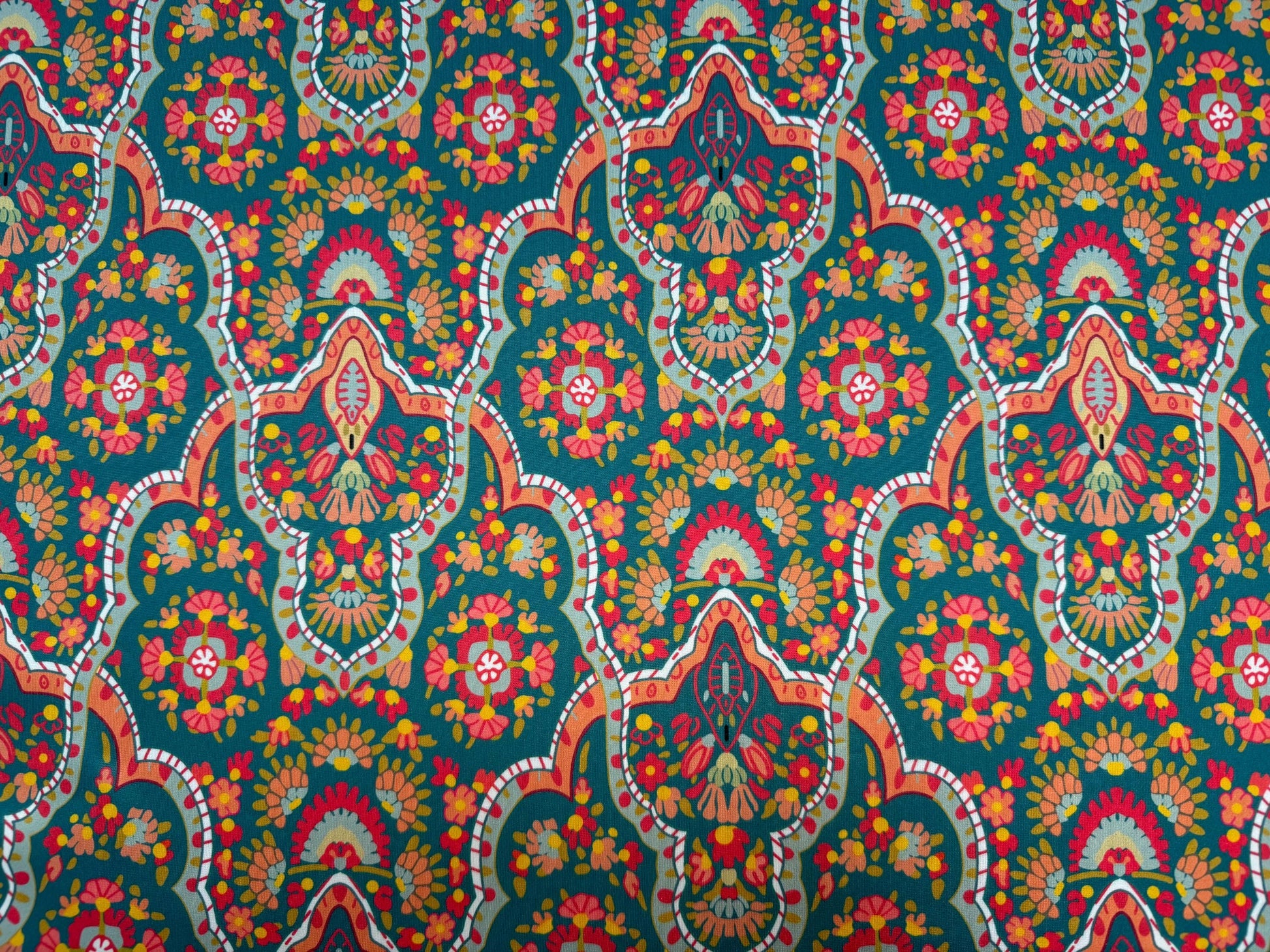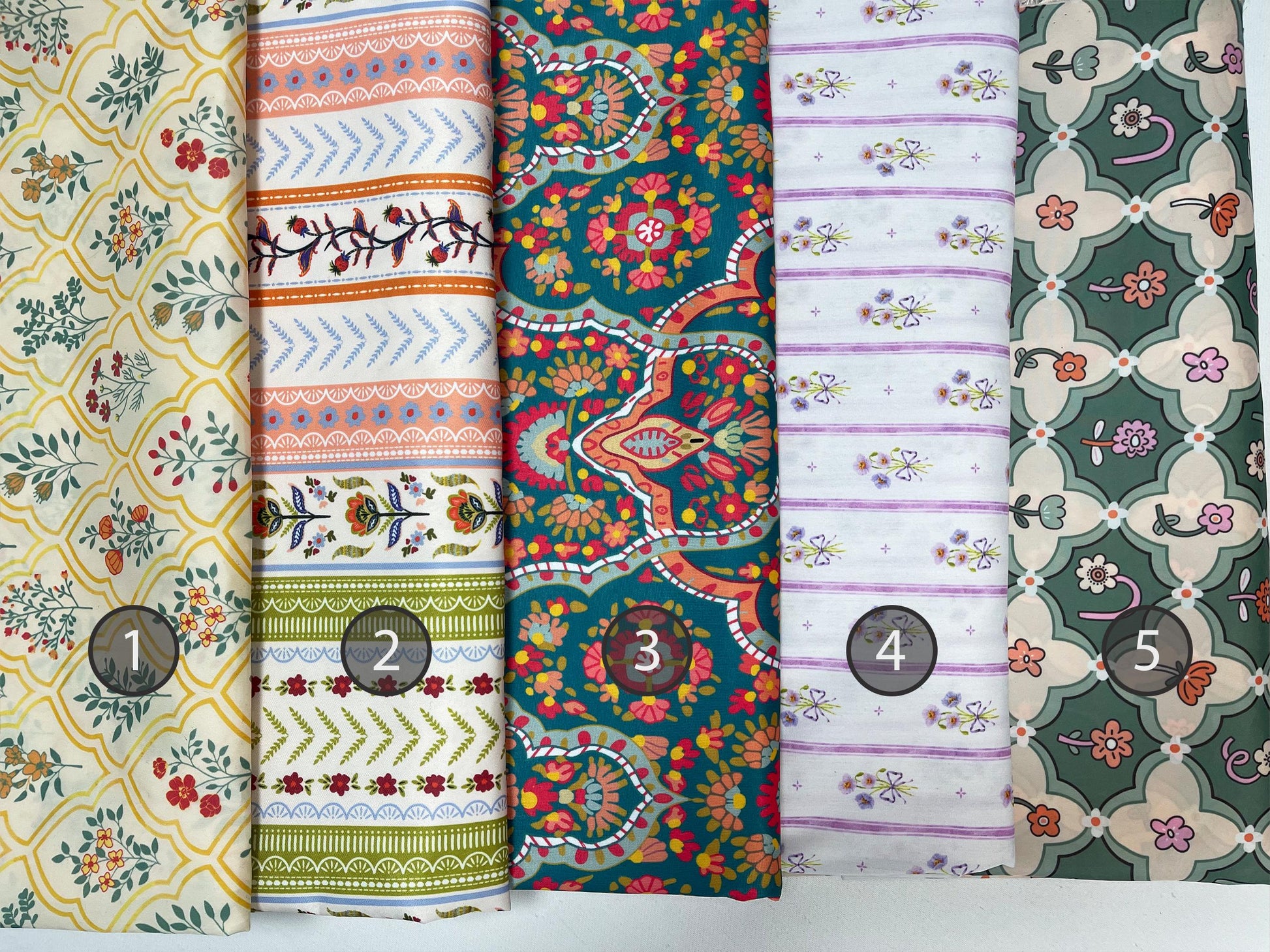 Dubai Jessica Baskı Kumaş - Çiçek ve Geometrik Desenler | Yumuşak - Elbiseler, El Sanatları ve Terzilik için Zarif Dikiş Kumaşı, 148 cm genişliğinde