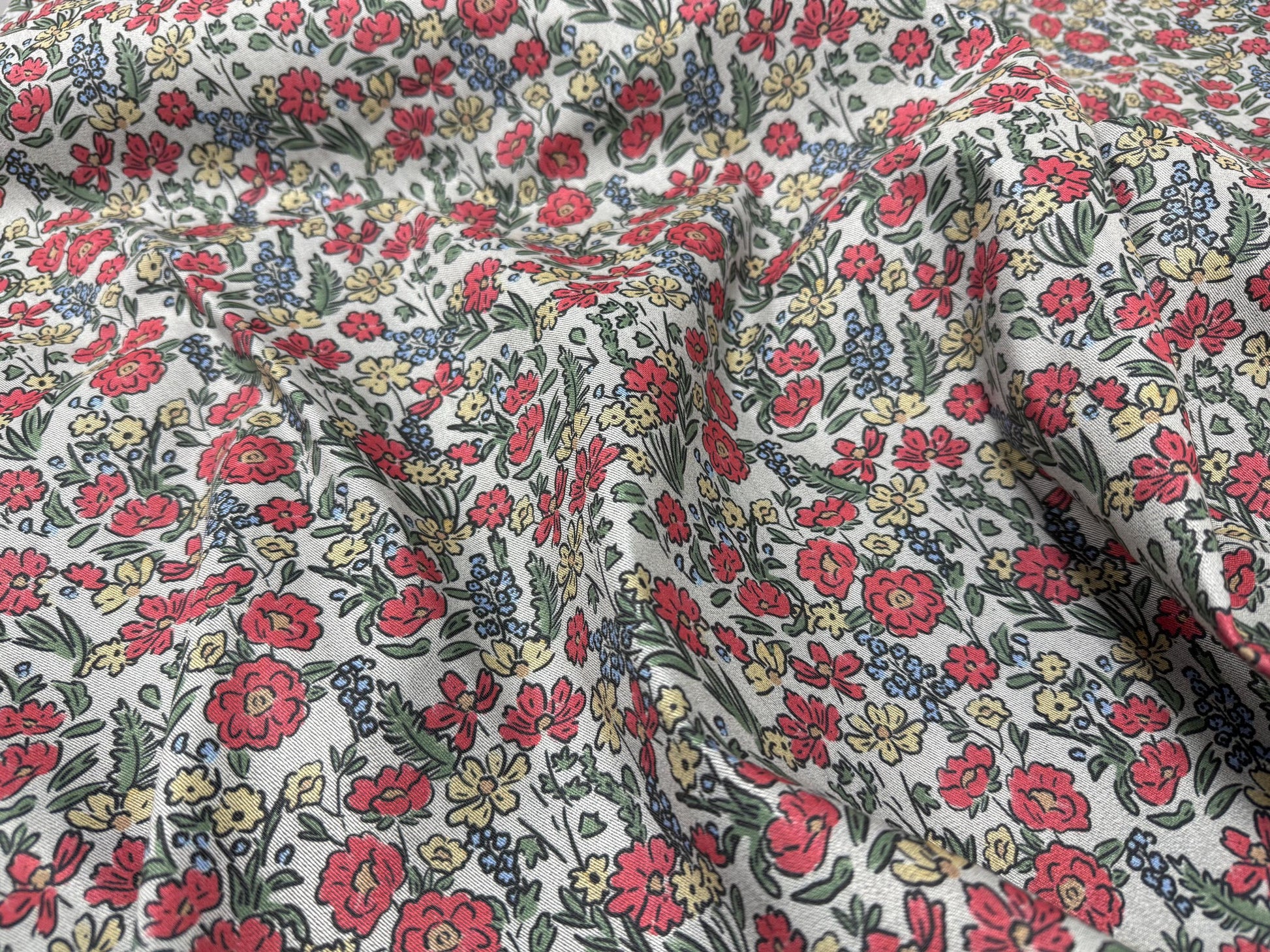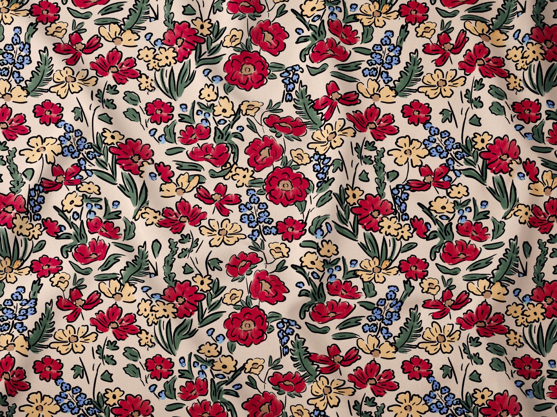 Çiçekli Kumaş – Kendin Yap, Döşeme ve Giyim için Muslin, Poplin, Keten, Saten ve Kot Kumaşlara Özel Baskı – Kırmızı ve Sarı Çiçekler