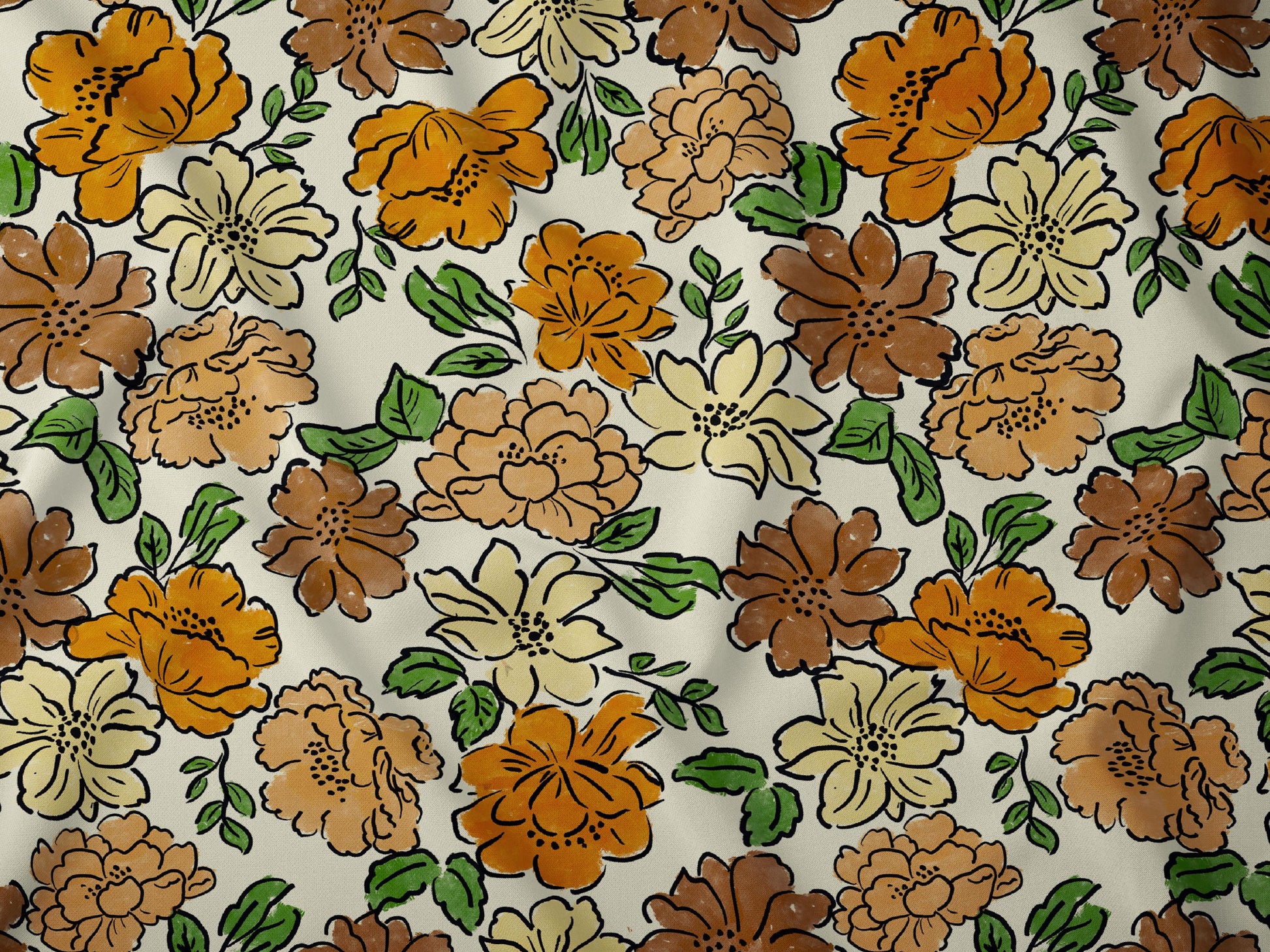 Çiçekli Kumaş – Kendin Yap, Döşemelik ve Giyim için Muslin, Poplin, Keten, Saten ve Kot Kumaşlara Özel Baskı – Sketch Çiçek Desenli