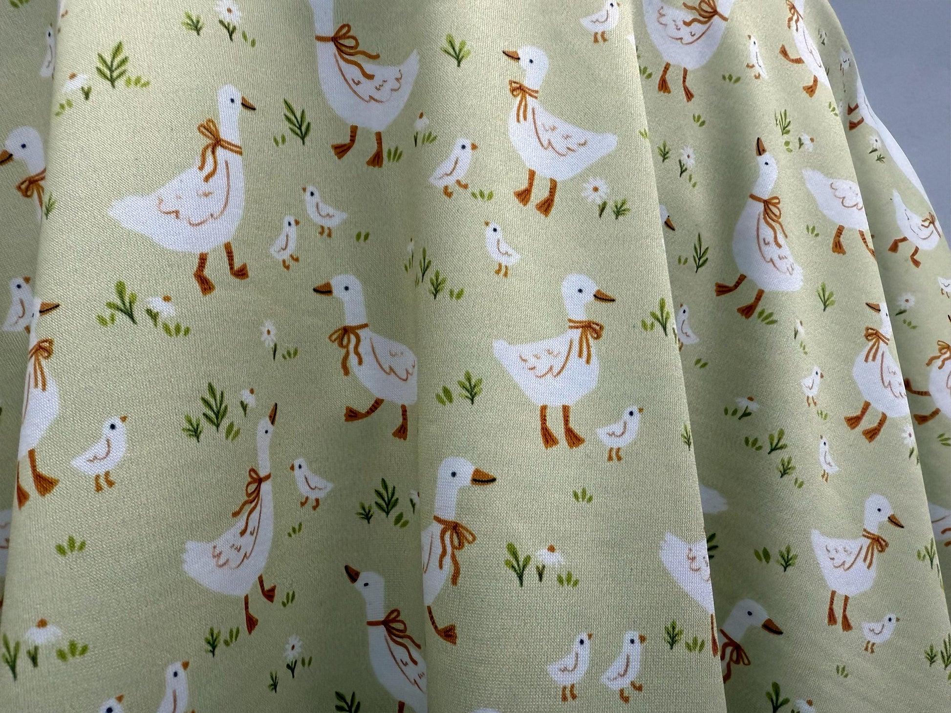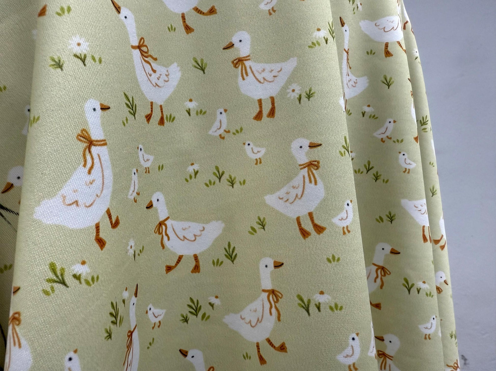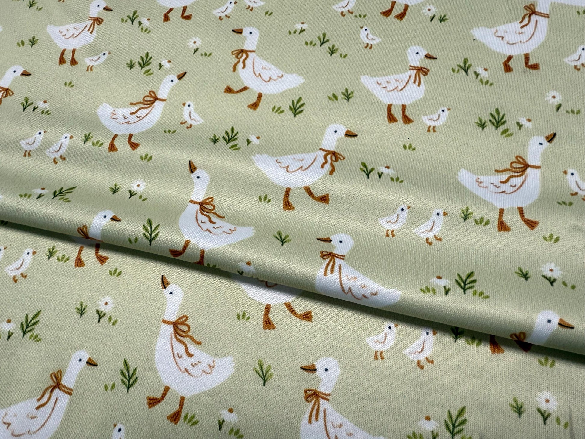 Yeşil Çiçek ve Ördek Baskı Kumaş - Lüks Transfer Baskılı Saten, Müslin, Poplin, Keten, Saten ve Denim Üzerine Mevcut - Özelleştirilebilir
