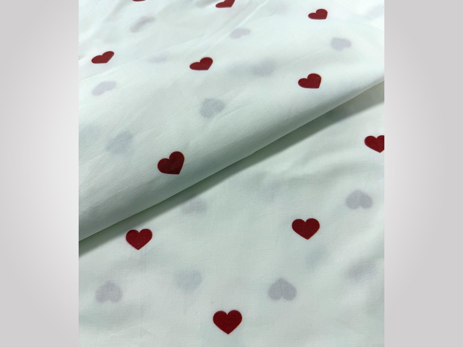 Kalp Desenli Poplin Kumaş, El Sanatları ve Terzilik için Pigment Baskılı Pamuk Poplin, Dikiş için Kumaş, Ev Dekorasyonu Kumaşı, Hediyelik Kumaş