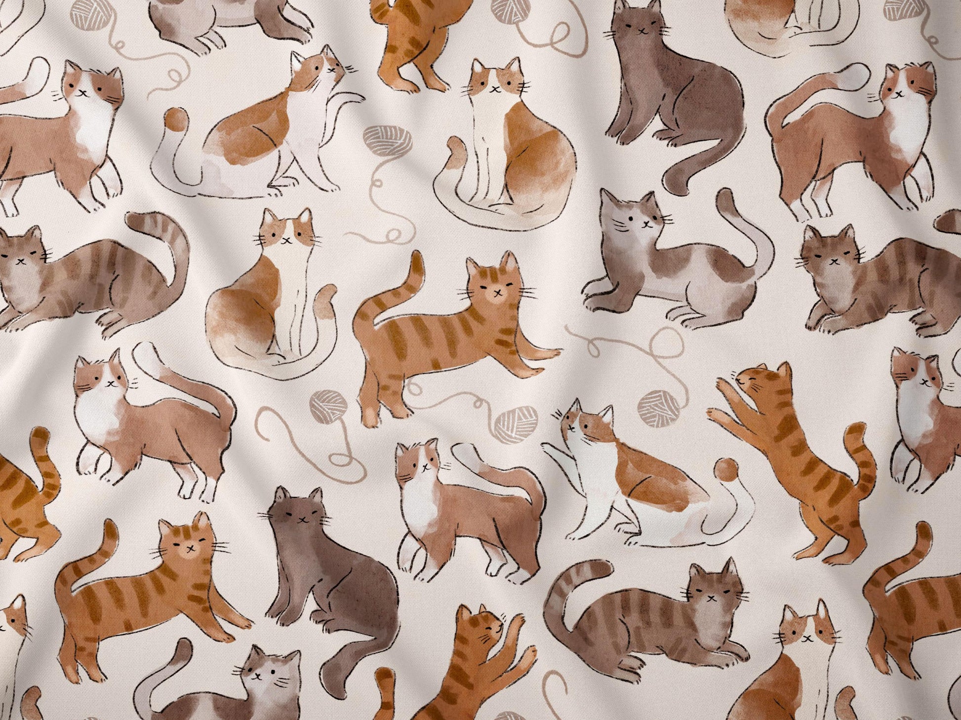 Kedi Baskılı Kumaş – Kendin Yap, Döşeme ve Giyim için Muslin, Poplin, Keten, Saten ve Kot Kumaşlara Özel Baskı