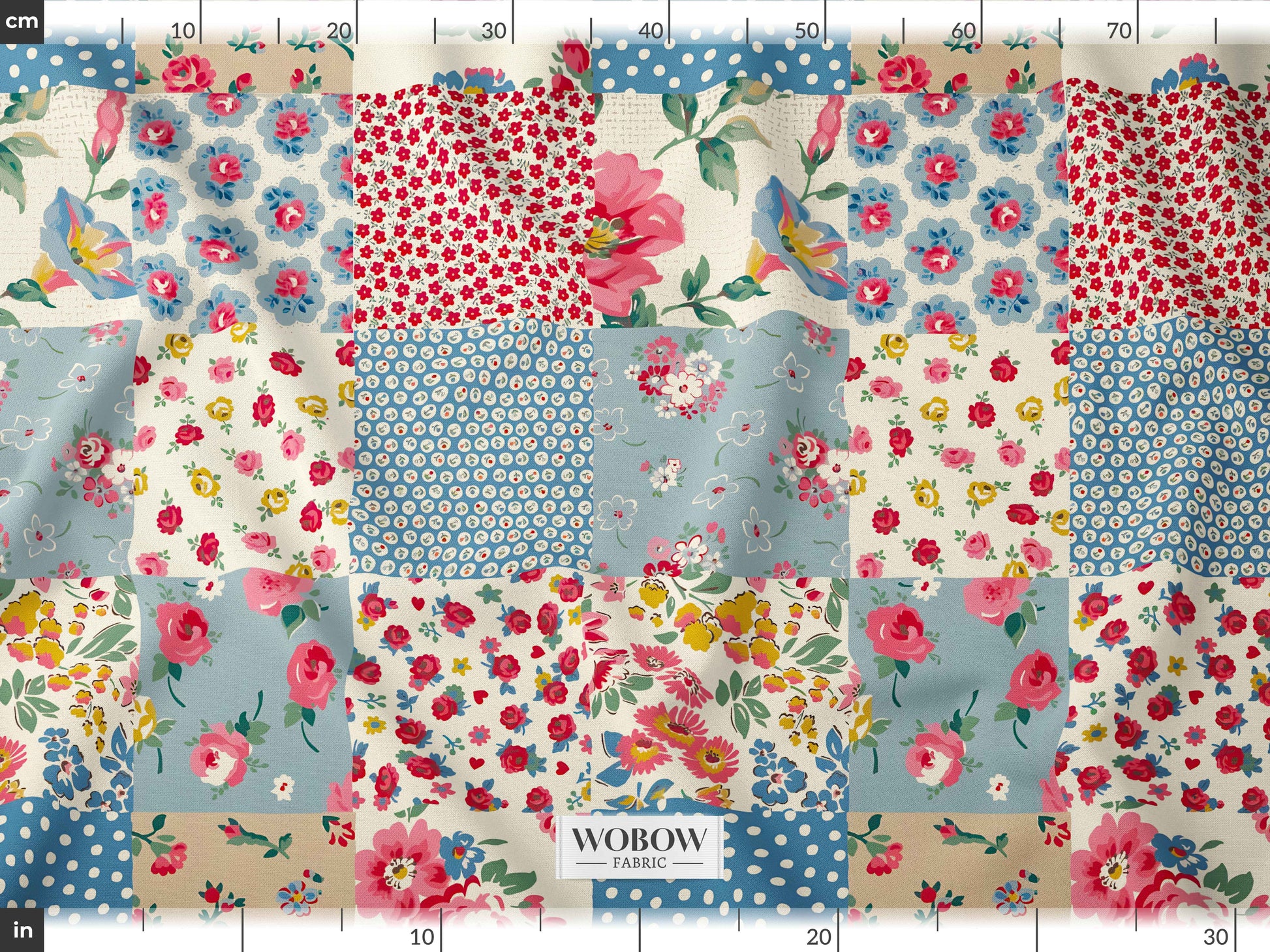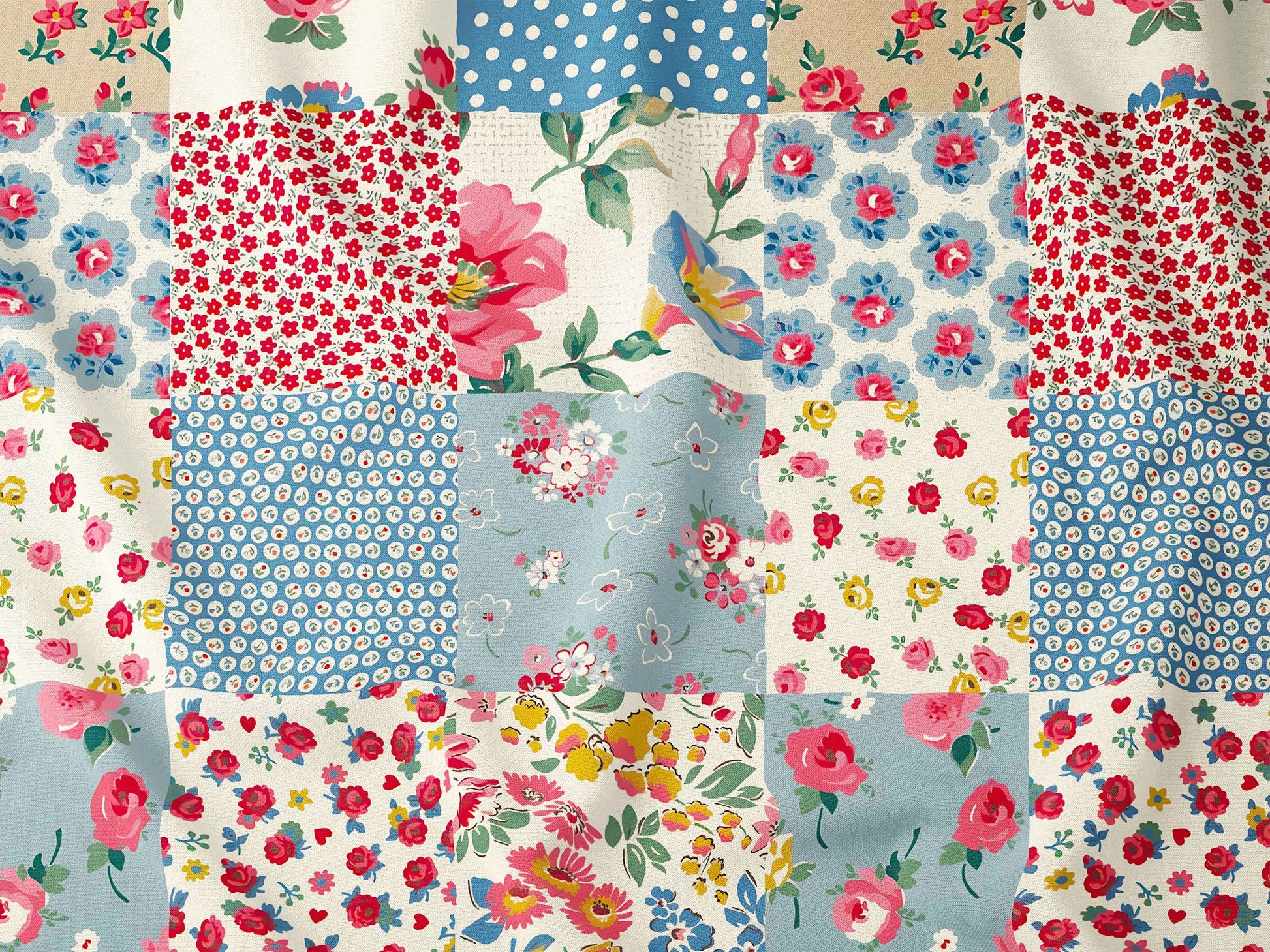 Vintage esintili çiçek desenlerinin bir araya geldiği bu yama işi kumaş, patchwork (kırkyama) ve kendin yap projelerinize özgünlük katacak! Kırkyama yorganlardan dekoratif ürünlere kadar geniş bir kullanım sunan bu kumaş, hem hobi severler hem de profesyoneller için ideal.