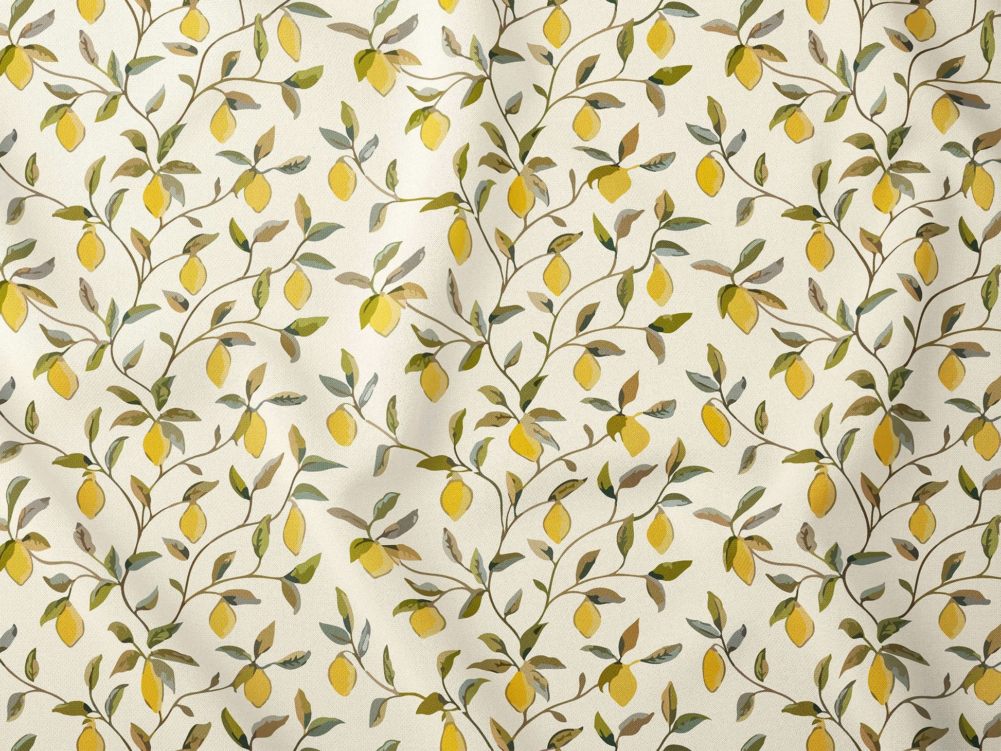 Parlak sarı limonlar ve yeşil yaprakların canlı uyumuyla tasarlanan bu neşeli kumaş, yaz projelerinize ve mutfak dekorunuza tazelik katacak!