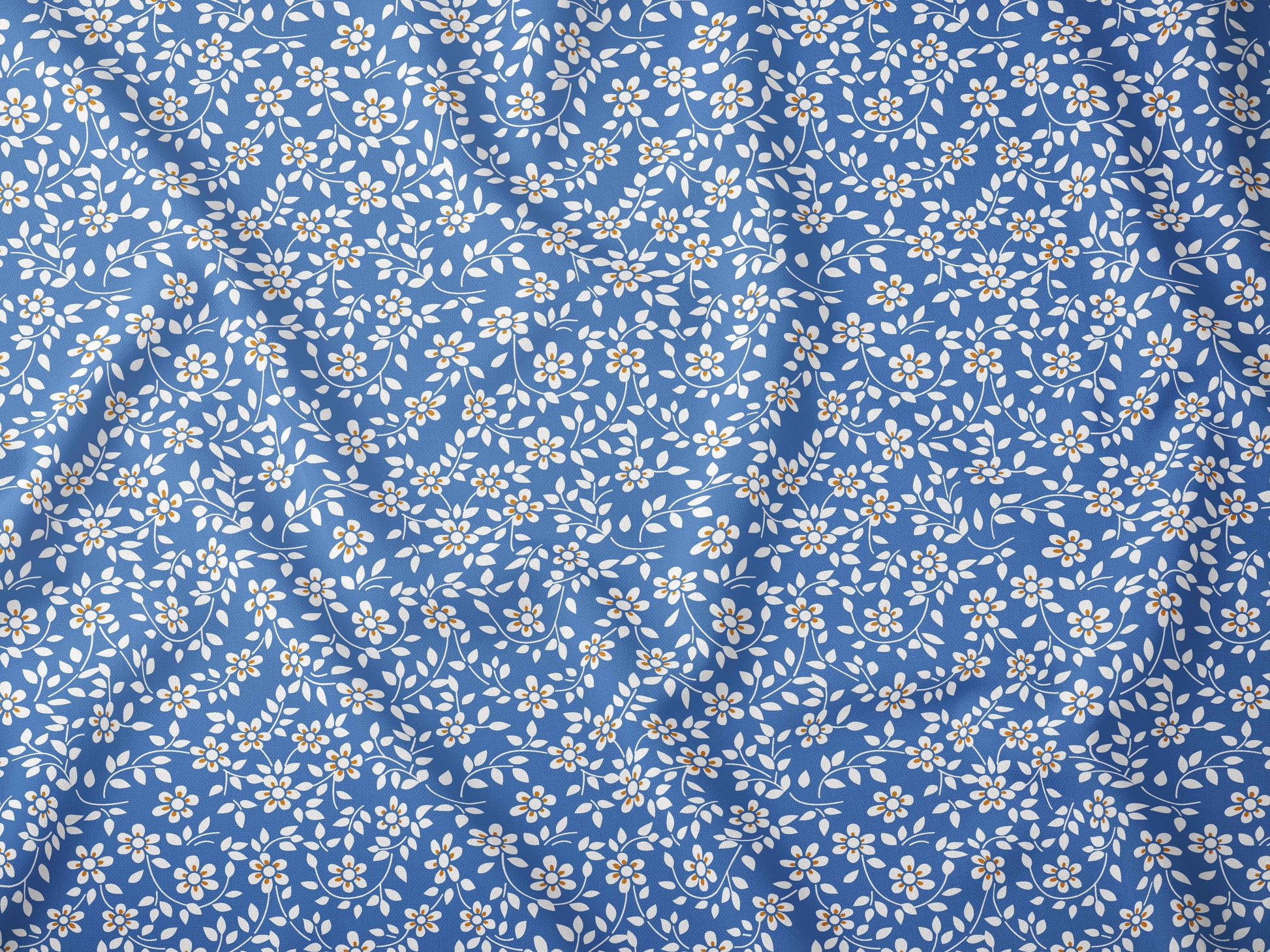 Mavi Fonlu Çiçek Desenli Kumaş – Müslin, Poplin, Keten ve Diğer Seçenekler