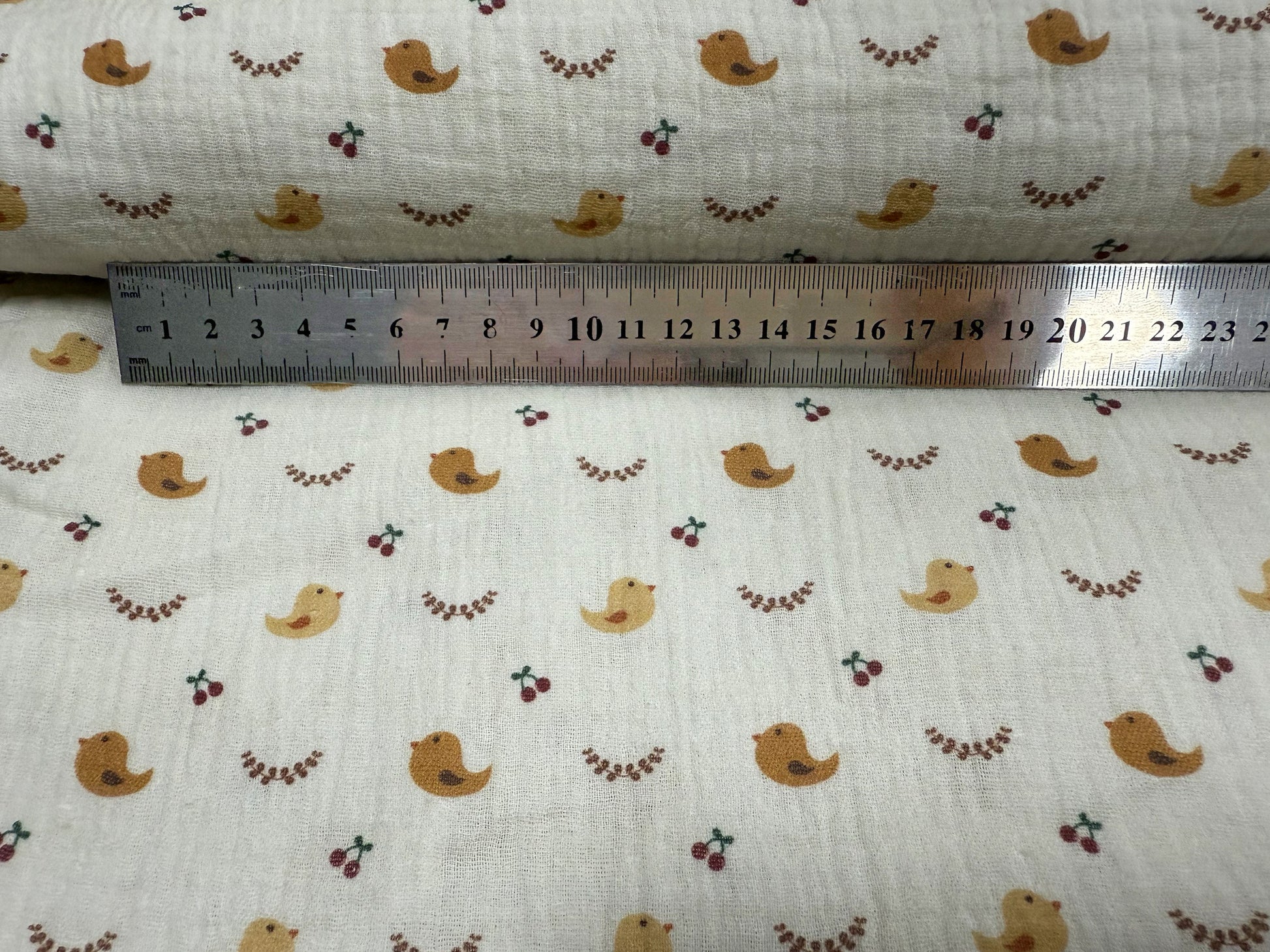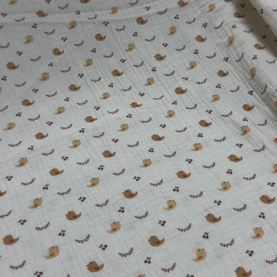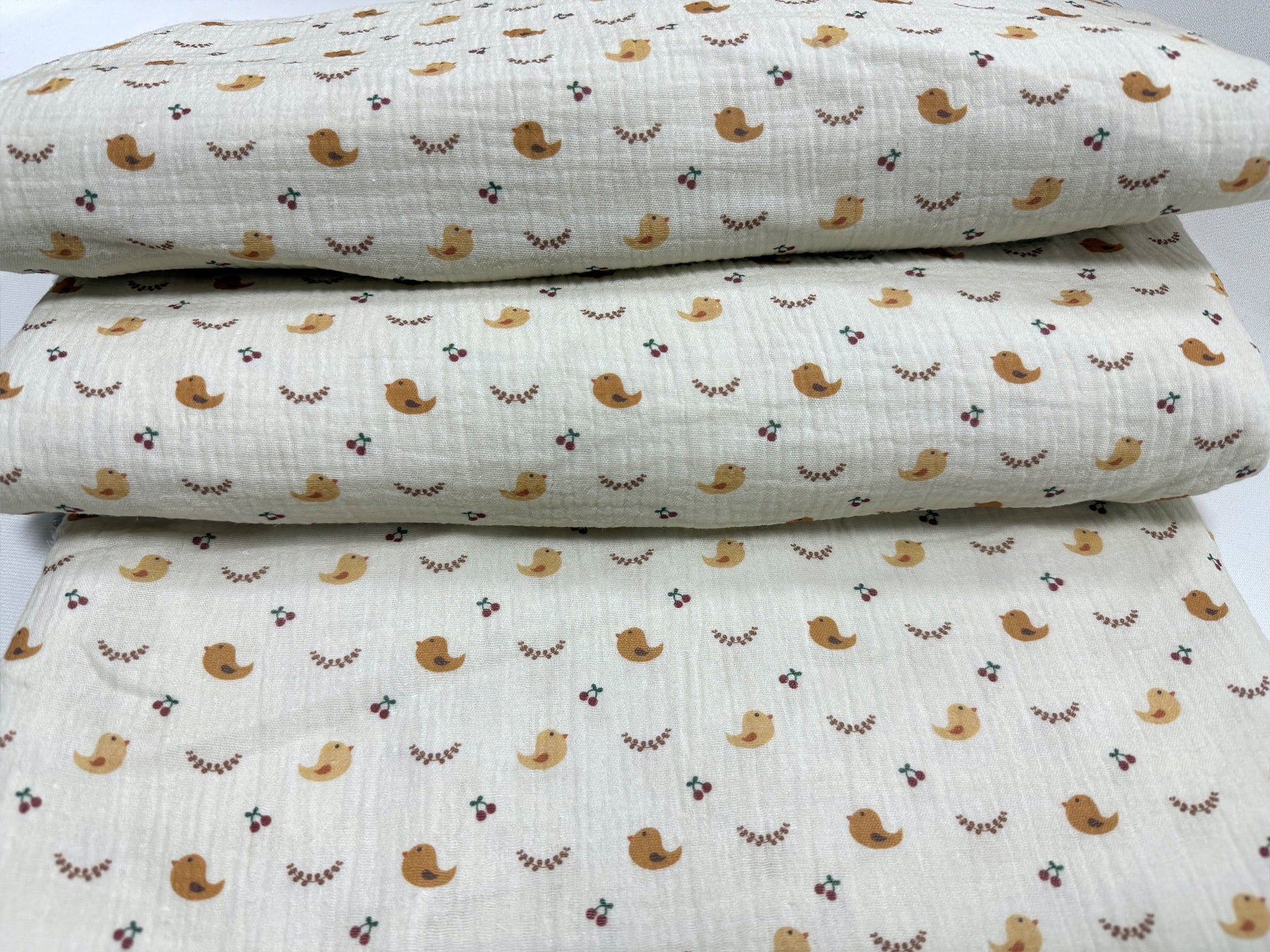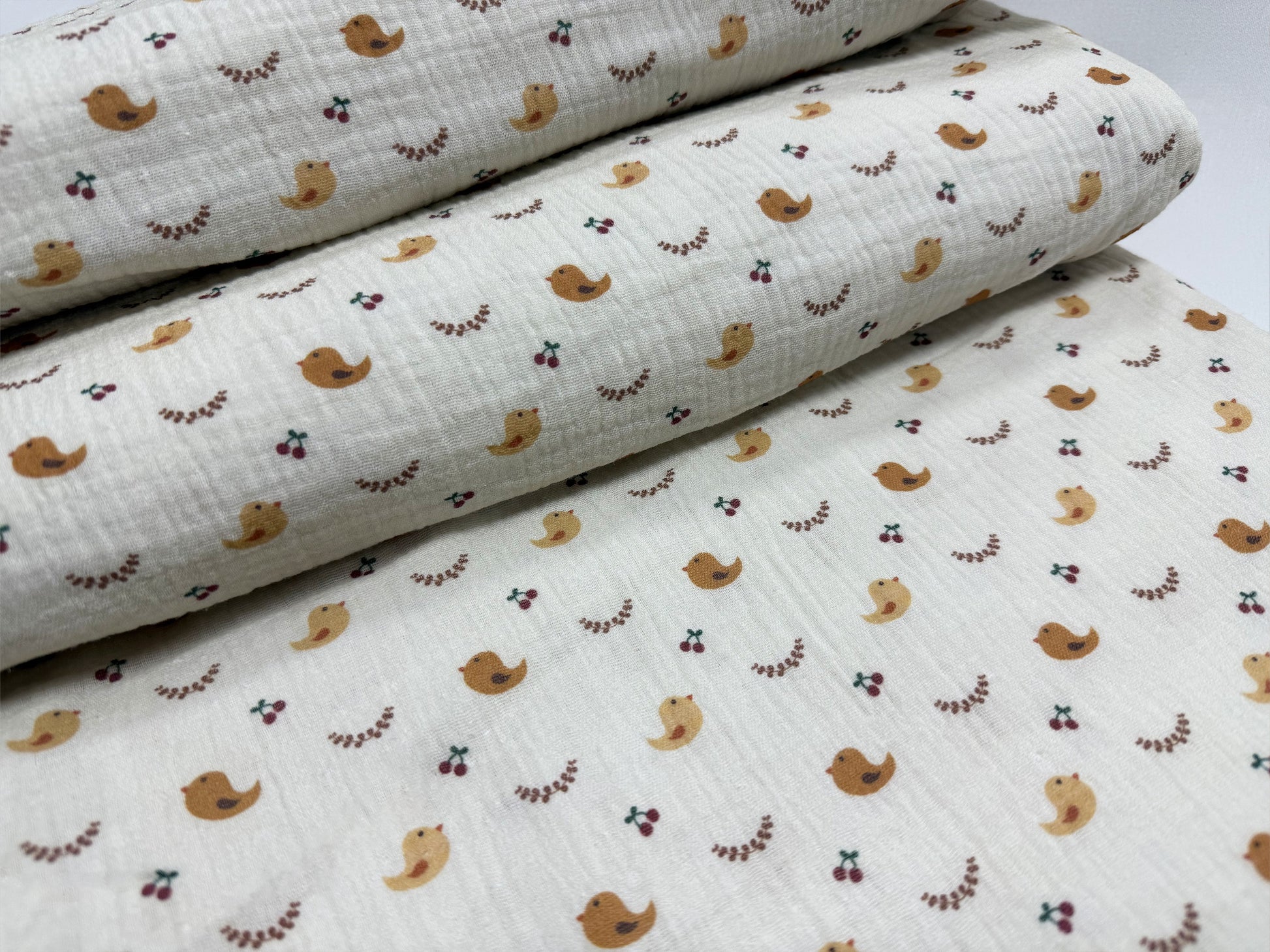 Sevimli Minik Kuş Desenli Kumaş – Müslin, Poplin, Keten ve Diğer Seçenekler