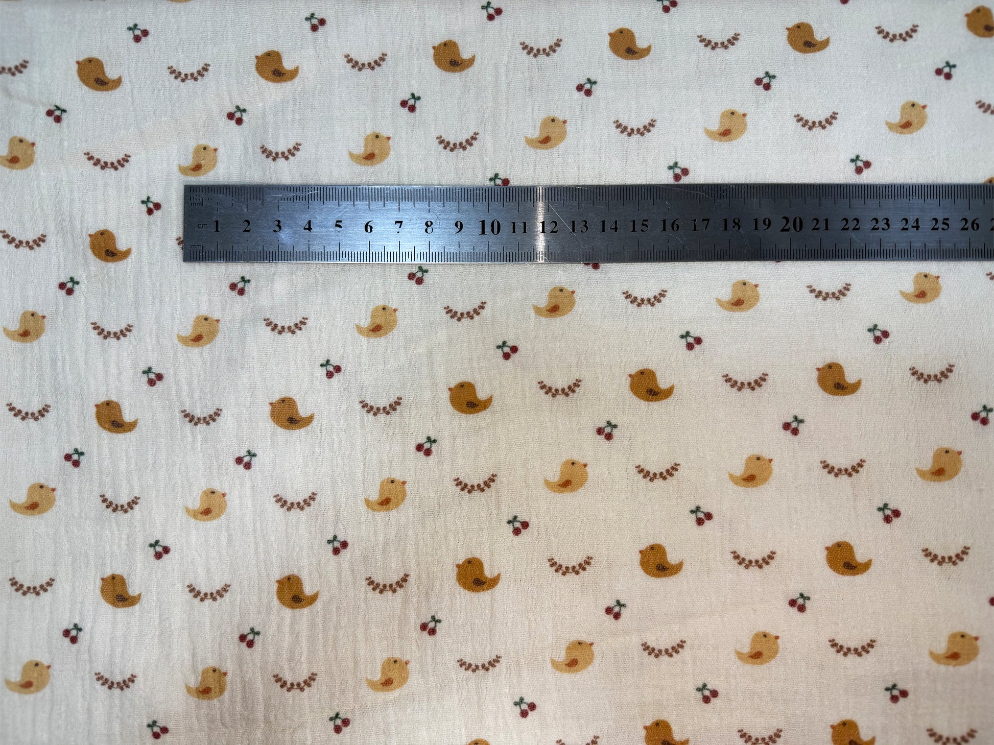 Sevimli kuş desenli bu özel kumaş, üzerindeki minik tatlı kuş figürleriyle hem doğal hem de neşeli bir atmosfer sunar. Kuş severlerin ve çocuk projeleriyle ilgilenenlerin bayılacağı bu desen; huzurlu, sıcak ve nazik bir görünüm sunar.