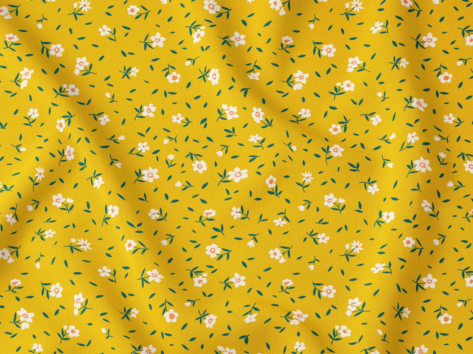 Papatya Desenli Sarı Kumaş – Müslin, Poplin, Keten ve Diğer Seçenekler