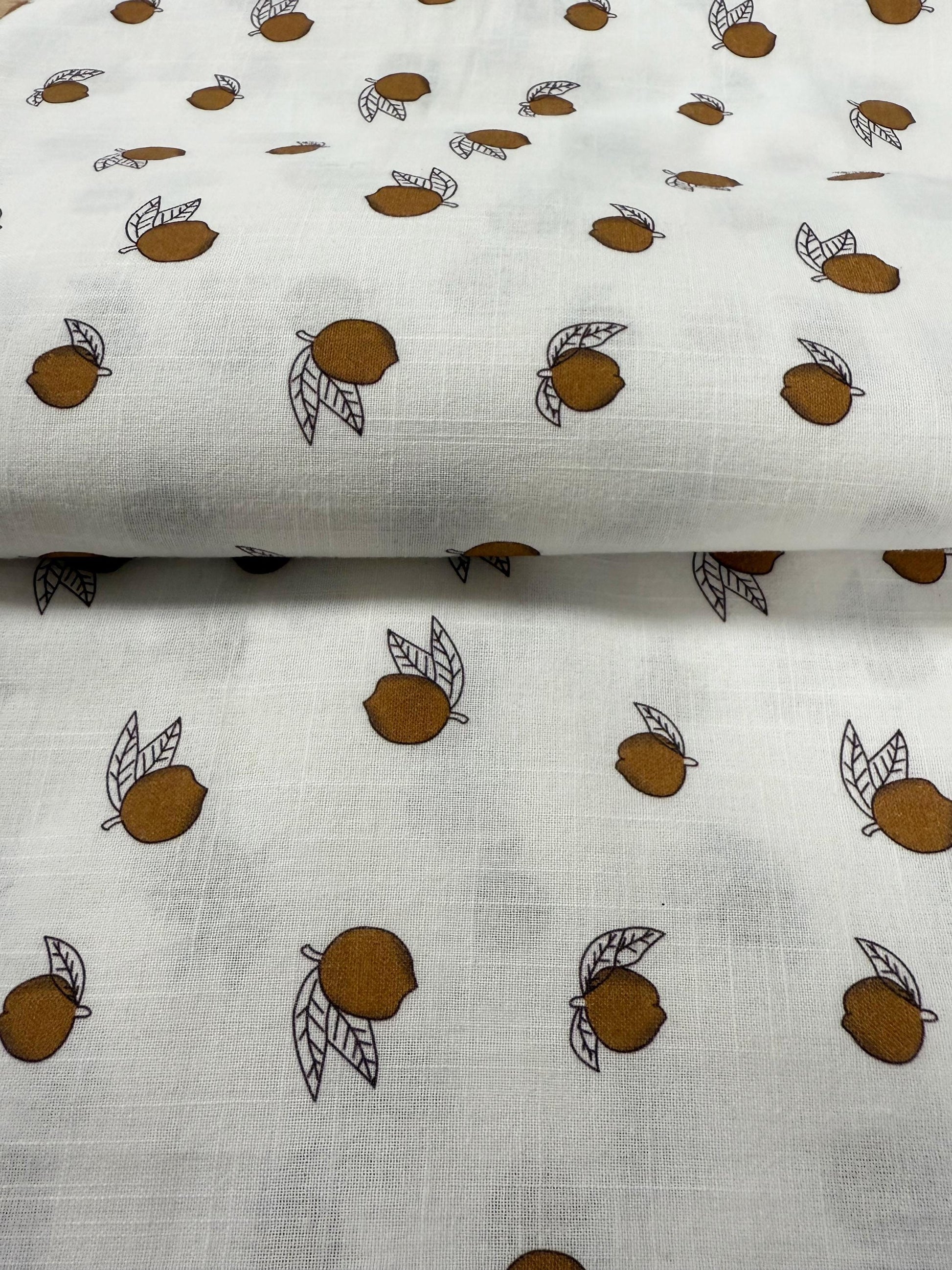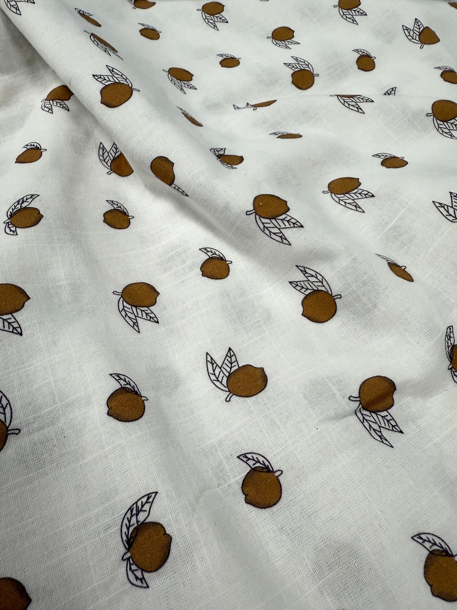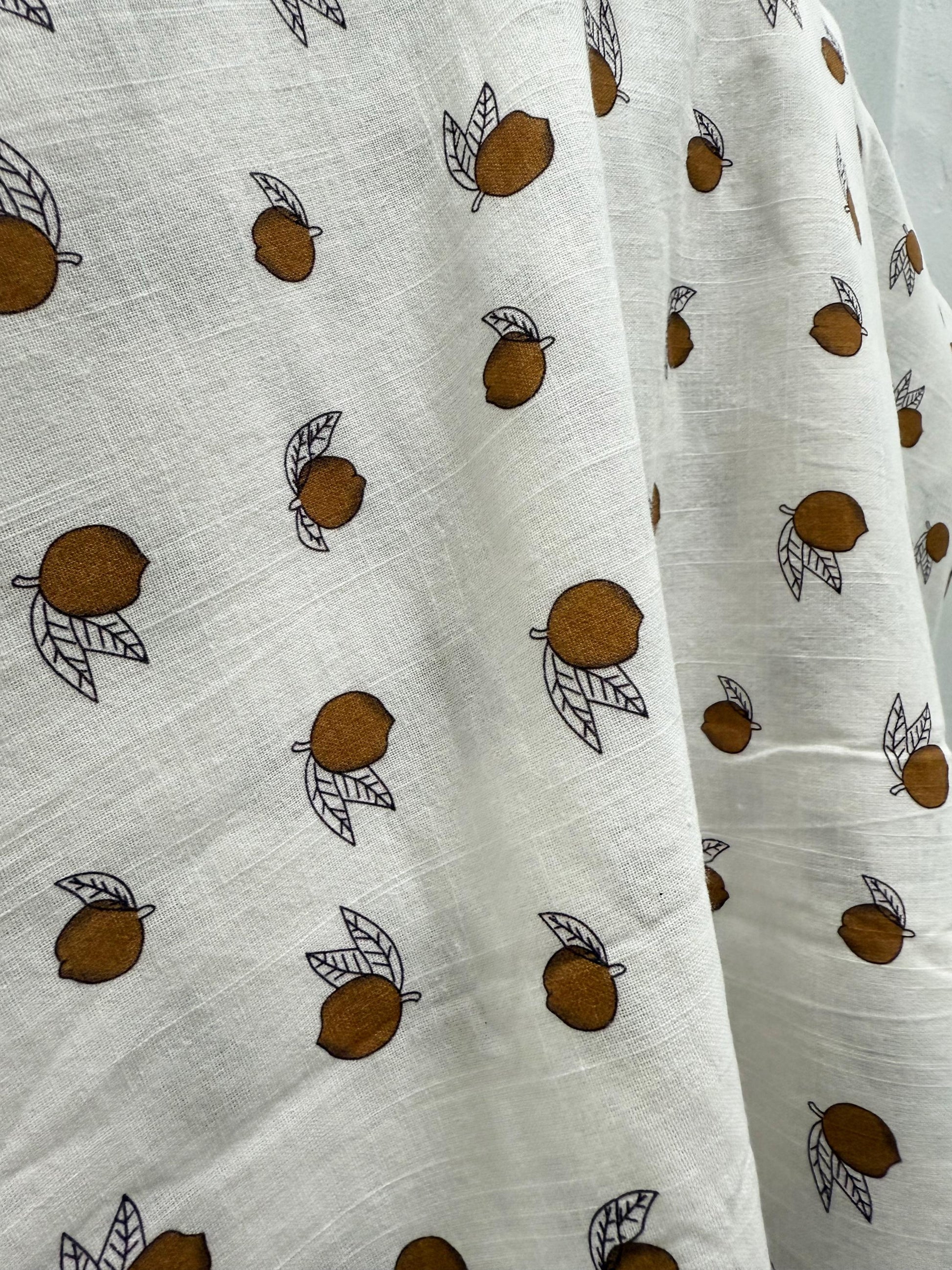 Ayva Desenli Keten Kumaş | Pigment Baskılı, Doğal Doku | Dikiş ve Dekor için Mükemmel | 148 cm eninde