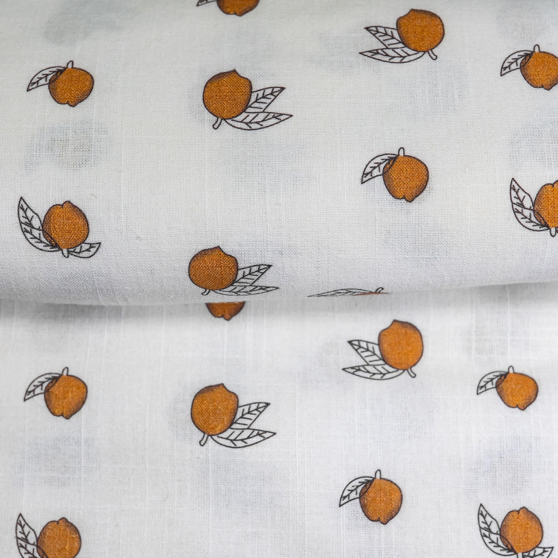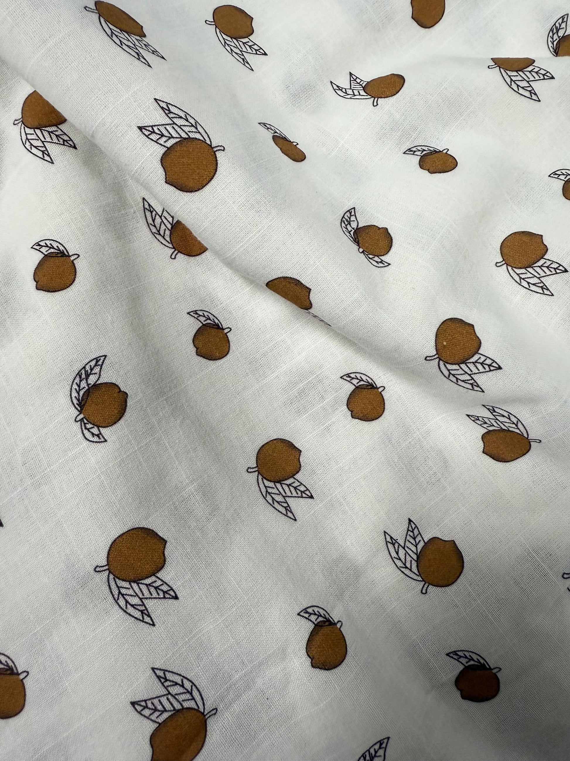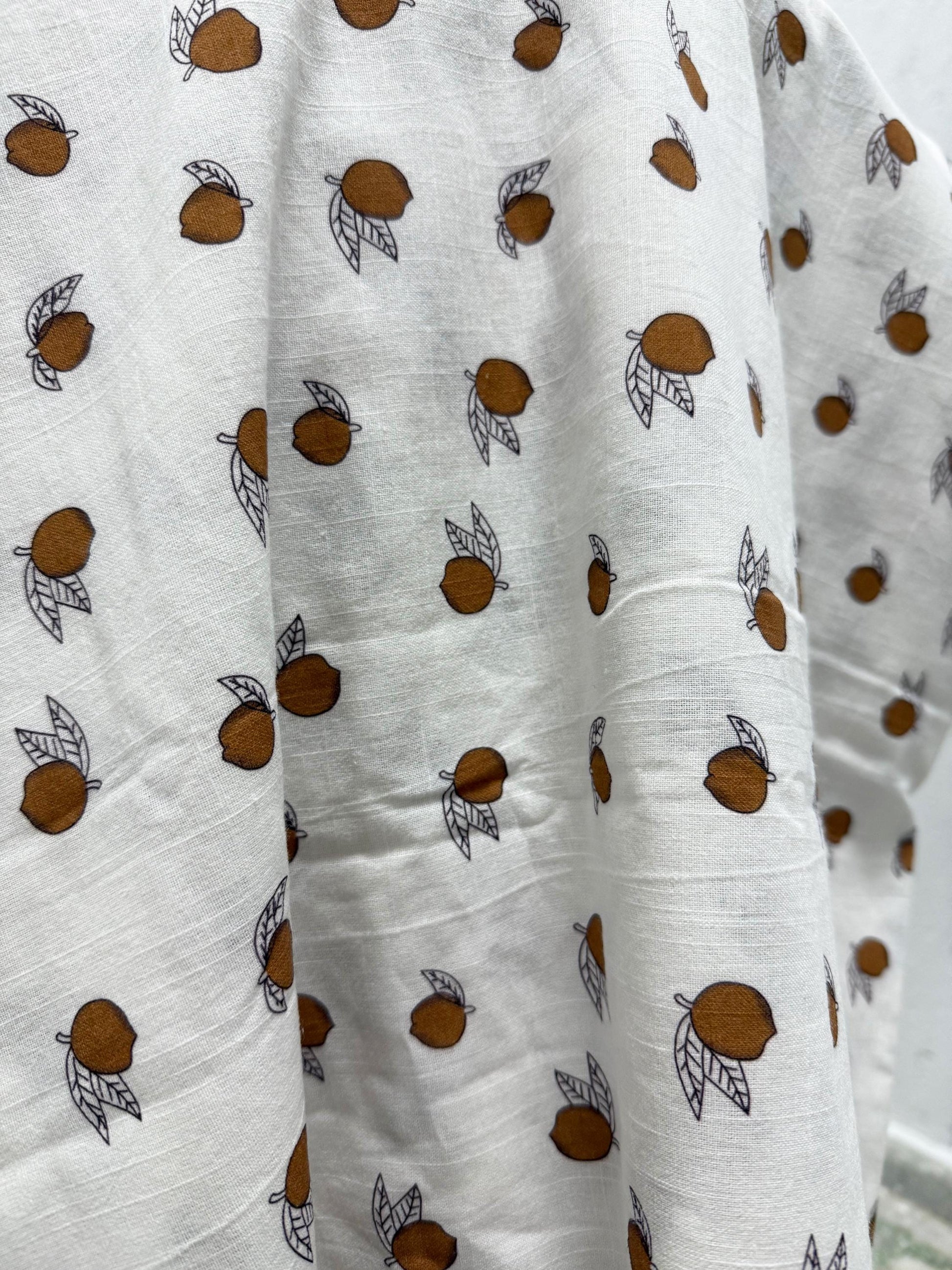 Ayva Desenli Keten Kumaş | Pigment Baskılı, Doğal Doku | Dikiş ve Dekor için Mükemmel | 148 cm eninde