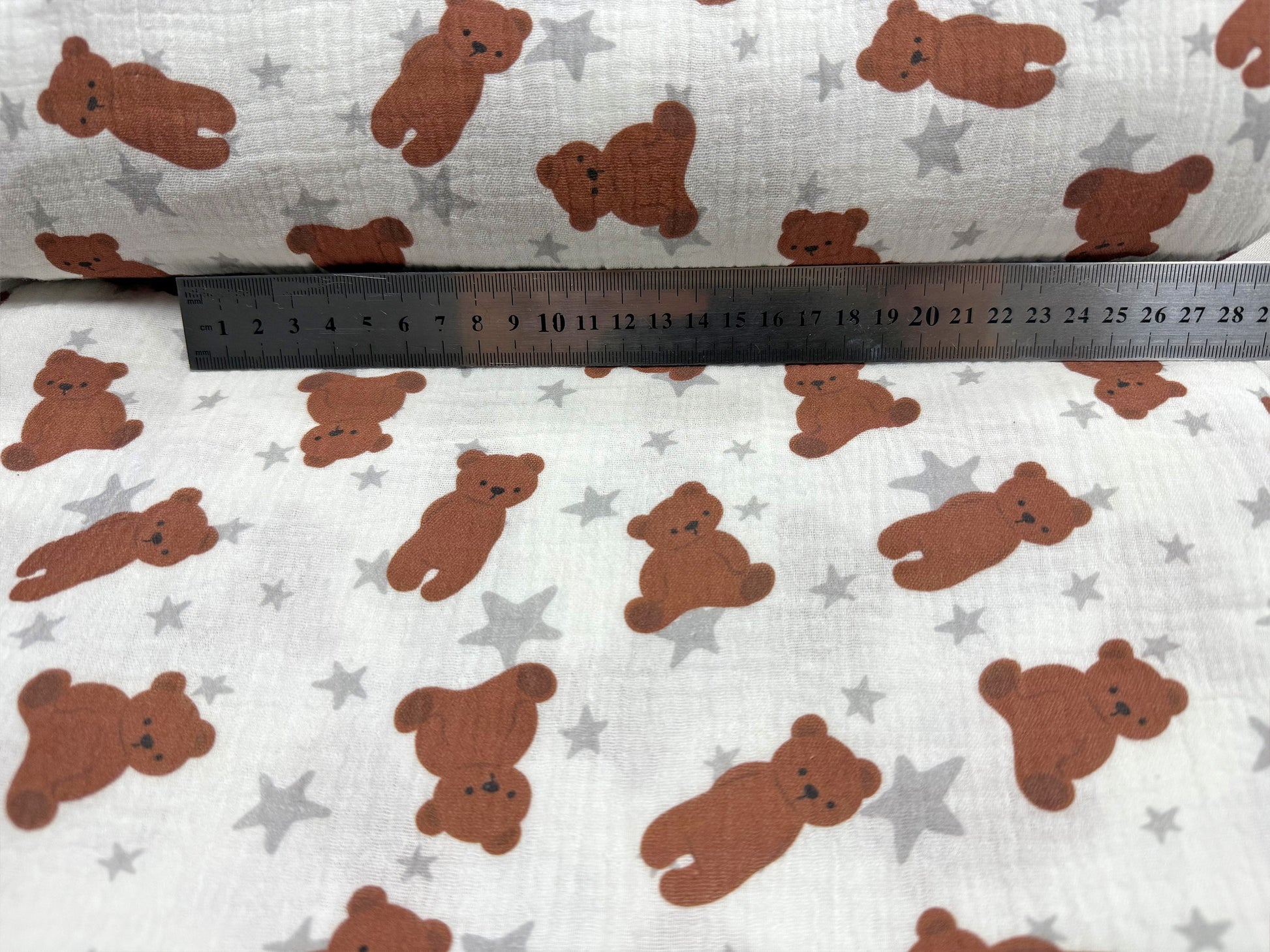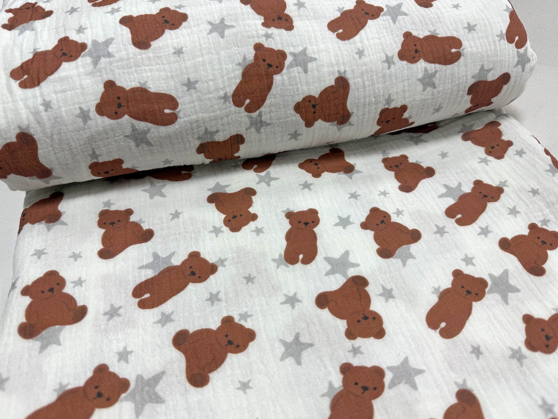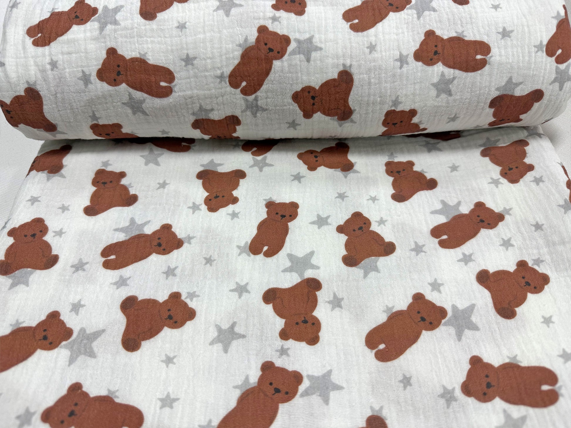 Yıldız ve Ayıcık Desenli Kumaş – Müslin, Poplin, Keten ve Diğer Seçenekler